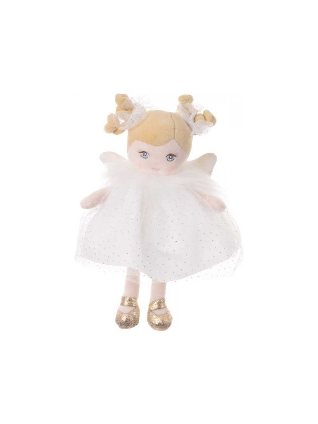 Panenka andílek Estell v bílých šatičkách. Panenka má na sobě tylové šatičky. Panenka je z velmi příjemného materiálu.