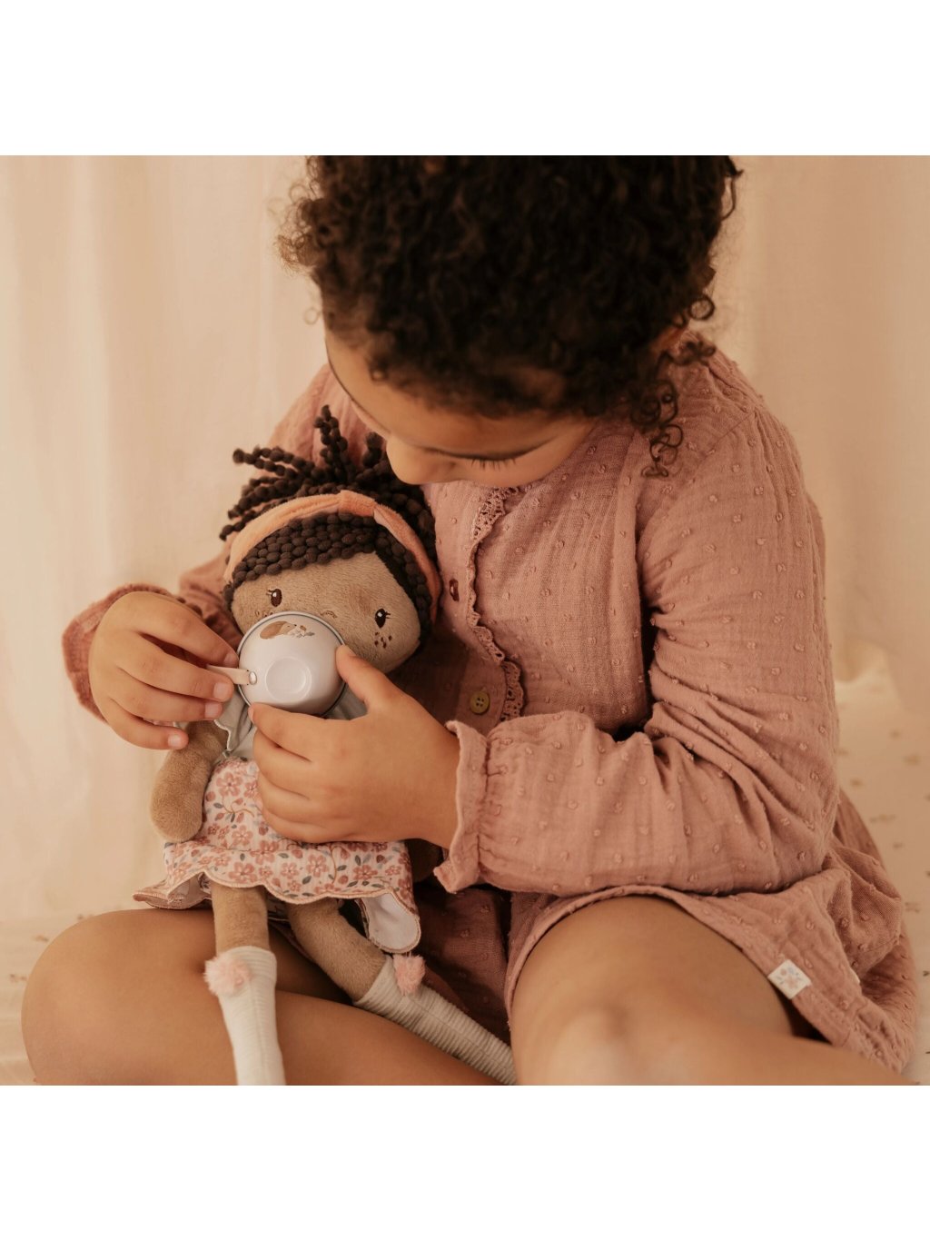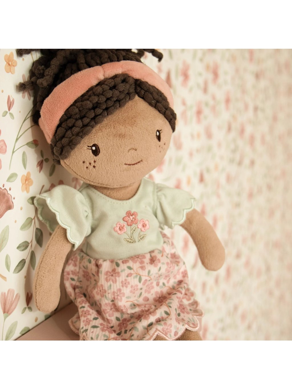 Seznamte se s plyšovou panenkou Evi, vaší novou měkkou kamarádkou. Se svou veselou květovanou sukýnkou, botkami a kudrnatým culíkem s čelenkou, vybízí k nekonečnému mazlení a společným hrám. Evi je úžasně měkká a perfektní na to, abyste ji mohli vzít kamkoli s sebou. Její roztomilý vzhled a krásné detaily z ní dělají opravdovou kamarádku každé holčičky.