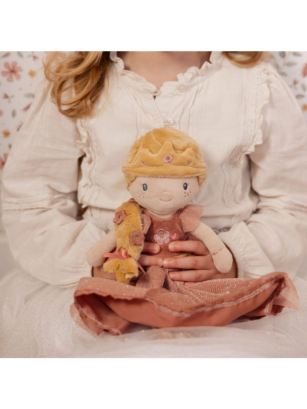 Seznamte se s princeznou Julií, měkkou plyšovou panenkou s dlouhým blond copem a roztomilými květinkami ve vlasech. Princezně samozřejmě nesmí chybět korunka. Její krásné šaty s vyšívanými květinami a dlouhou sukní vybízejí k nekonečnému mazlení a hraní. Panenka je vyrobena z úžasně měkkého materiálu, takže ji můžete vzít kamkoli sebou.