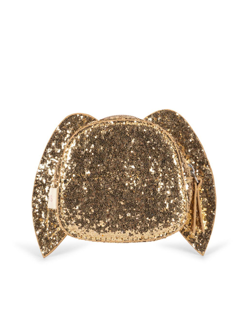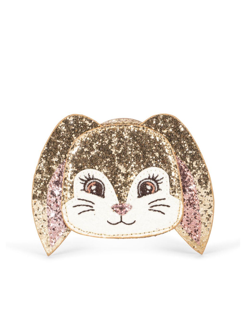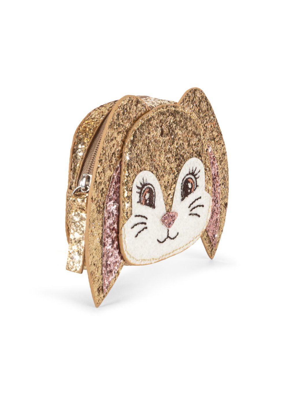 Třpytivá peněženka se zapínáním na zip ve tvaru zajíčka.