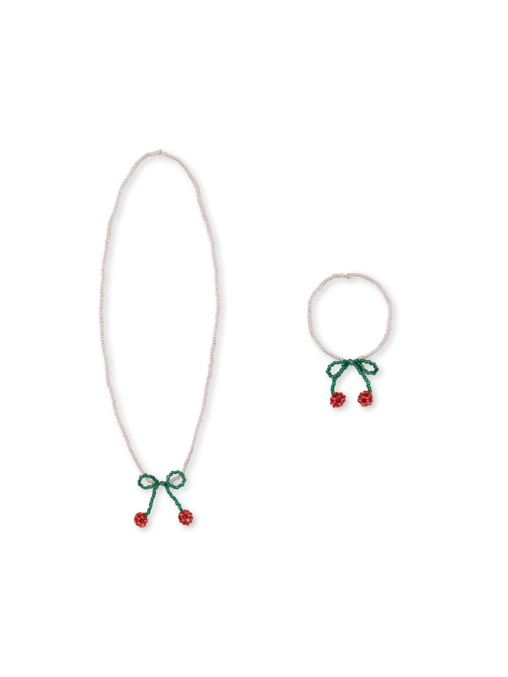 Sada perlového náhrdelníku s náramkem s motivem třešinek.