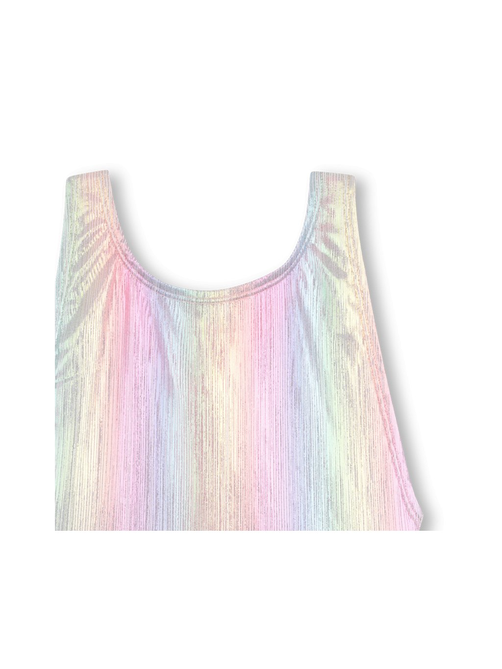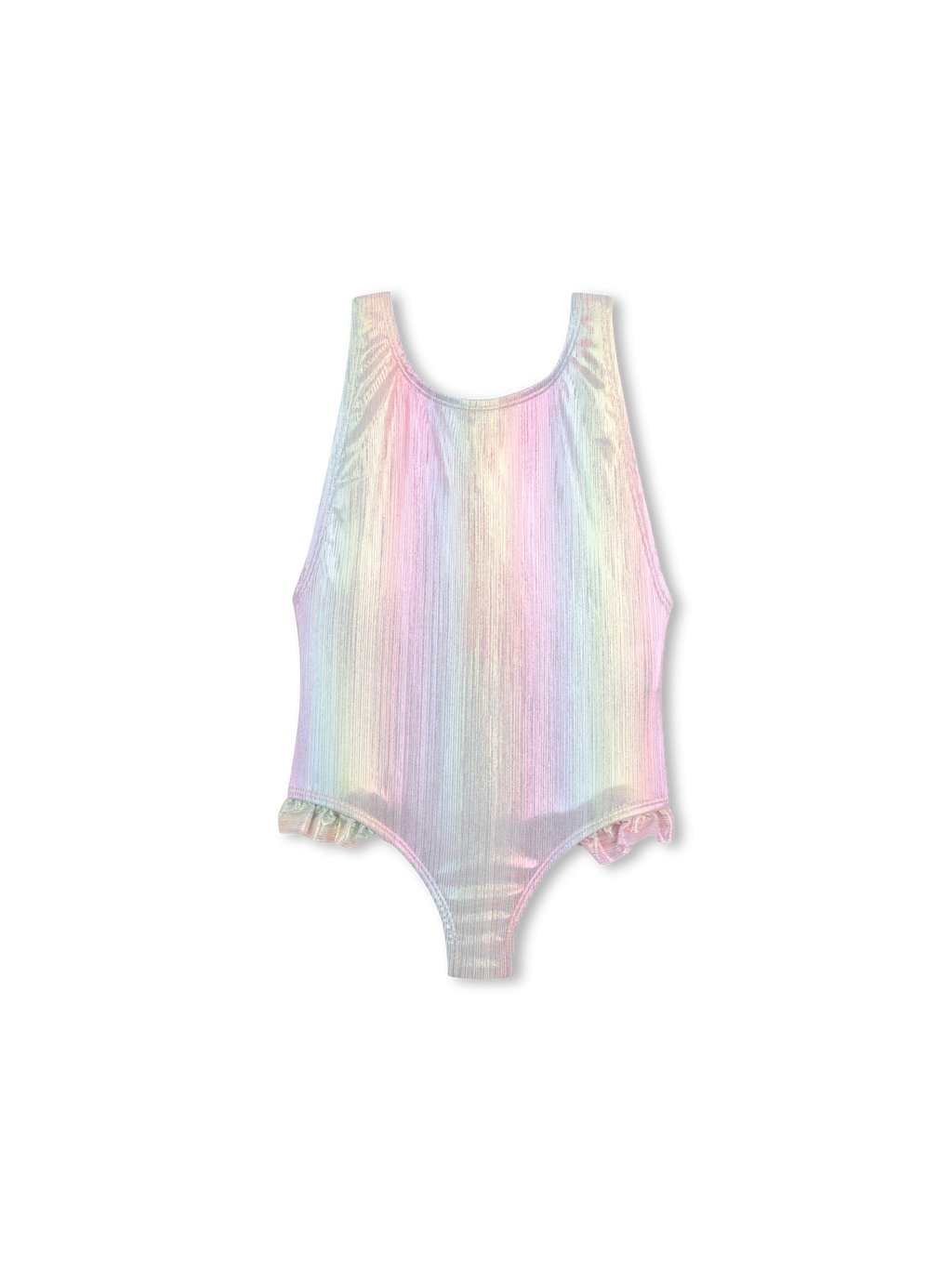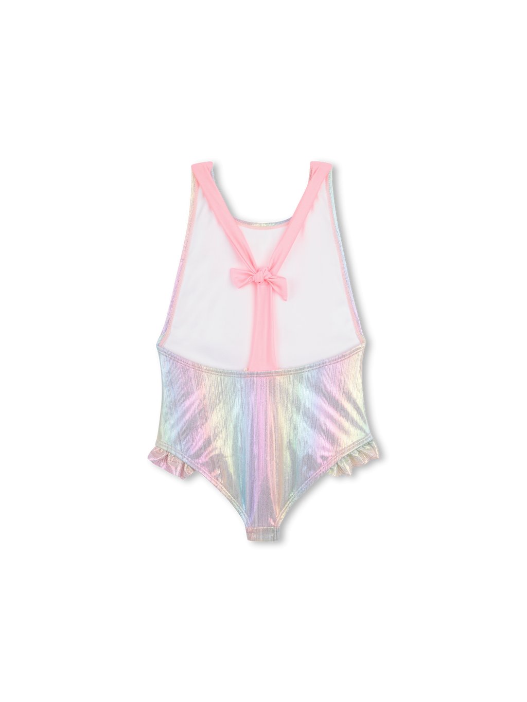 Tyto třpytivé jednodílné plavky od Billieblush mají hravý styl. Kontrastní ramínka s roztomilou mašličkou a volánky po stranách. Pro ještě větší pohodlí jsou plavky celé podšité.