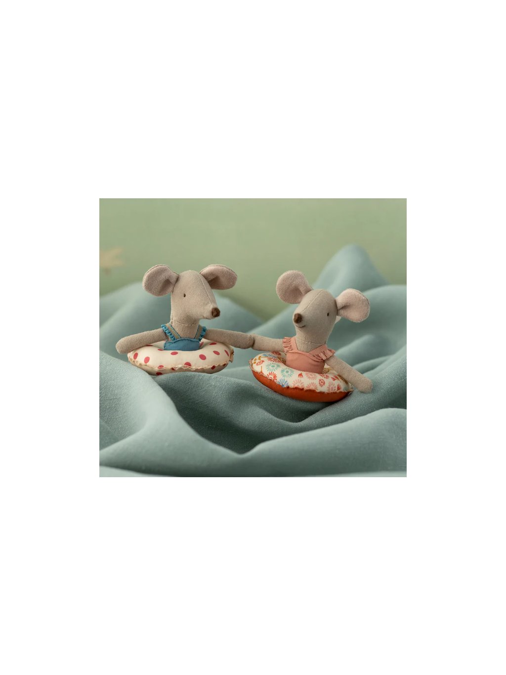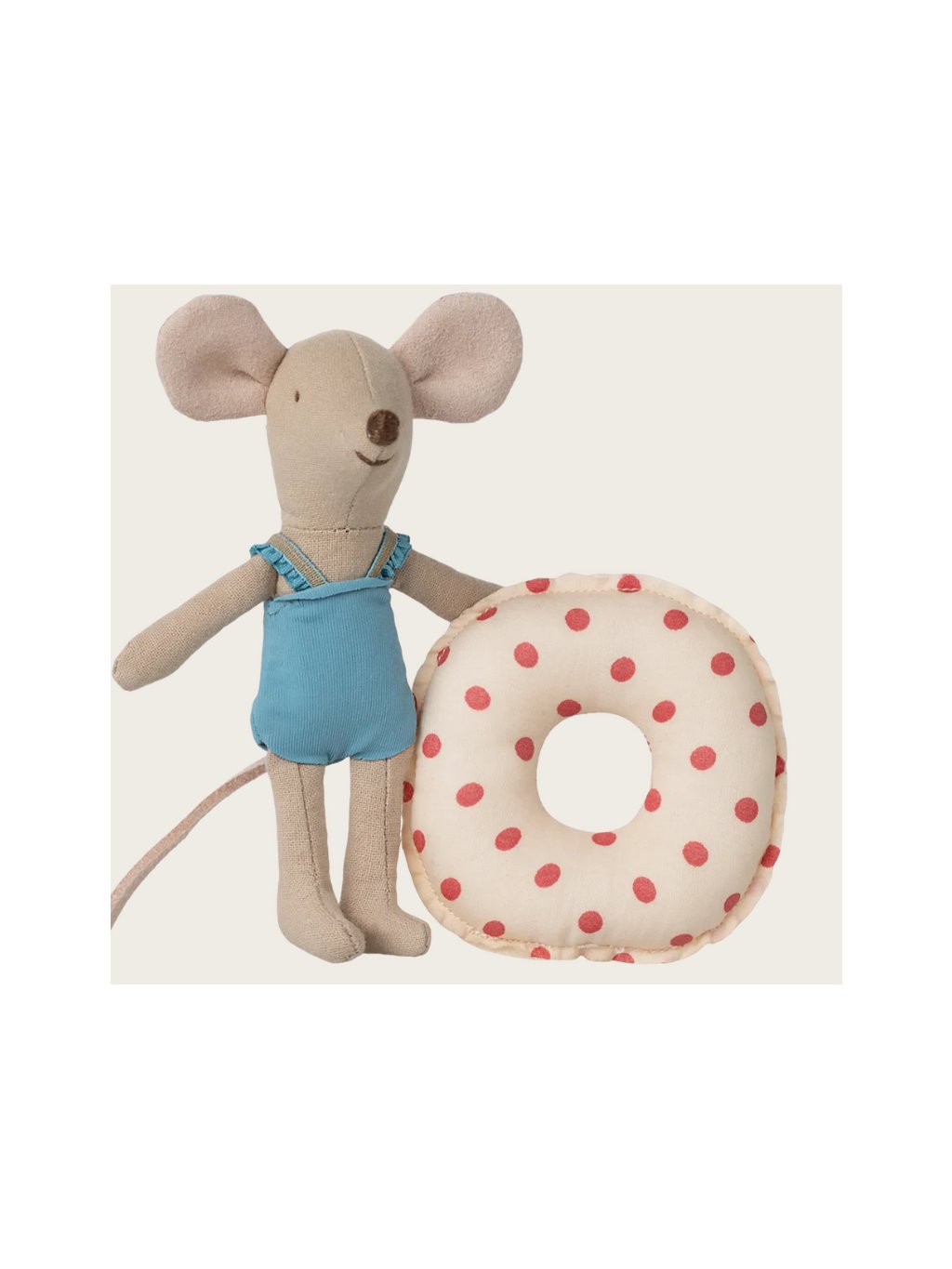 Tato letní sada obsahuje malou myší sestřičku oblečenou v modrých plavkách s červeným puntíkovaným plovákem kolem bříška. Nyní je připravena na bezpečné plavání v moři.