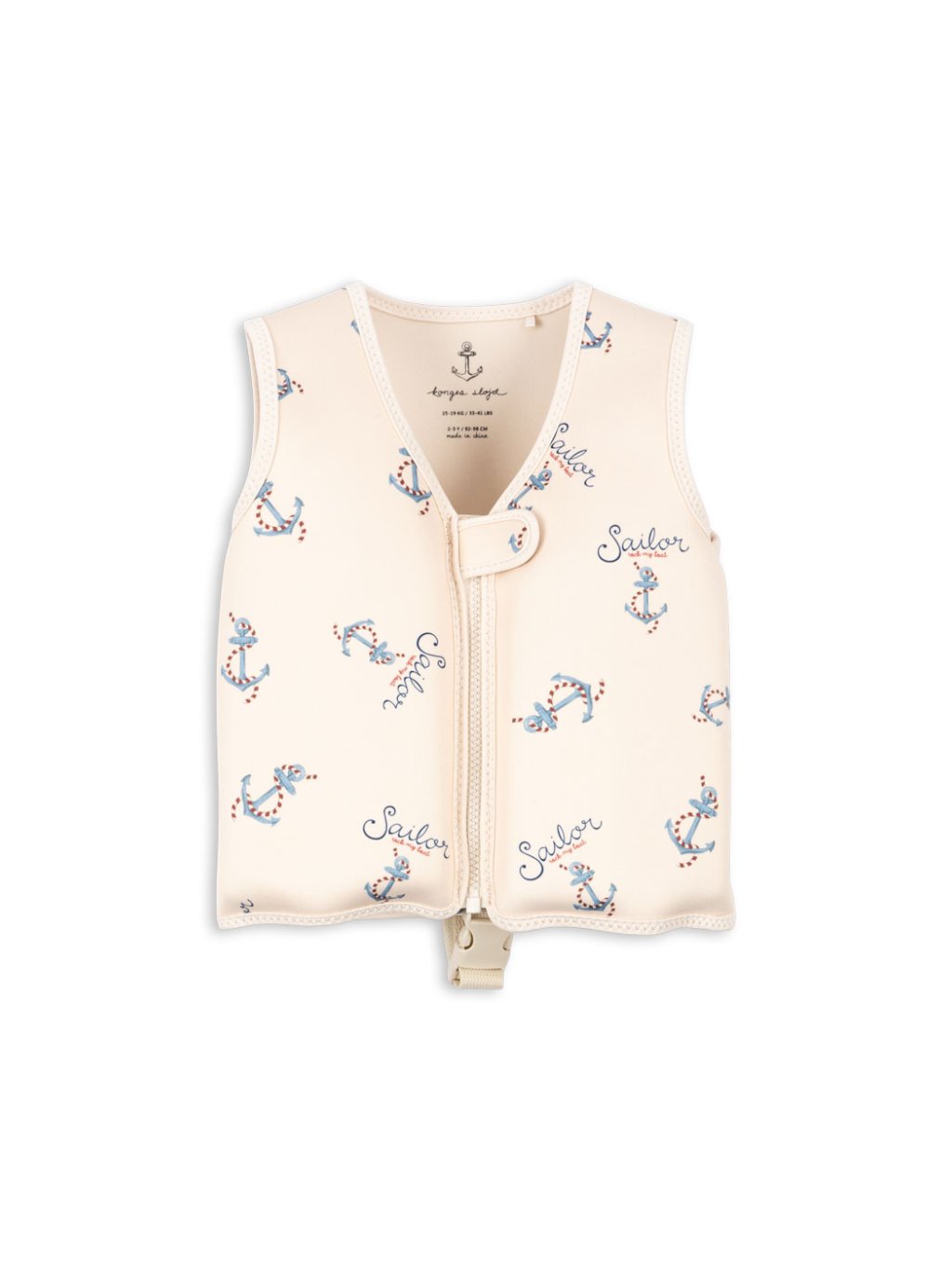 Nádherná neoprenová plovací vesta s námořnickým motivem. Zapínání je na zip a suchý zip. Vesta obsahuje bezpečnostní popruh s přezkou v rozkroku, dítě nemůže tak z vesty vyklouznout.