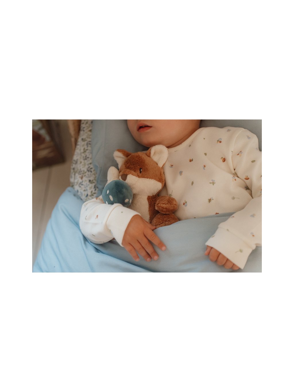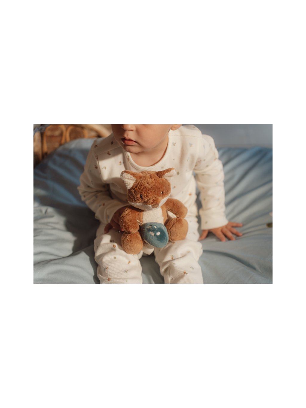 Jemná plyšová hračka v podobě veselé lišky s houbičkou je ideální jako mazlík do postýlky pro lepší usínání vašeho dítěte. Liška umí sedět a může se tak stát i krásnou dekorací v dětském pokojit.
