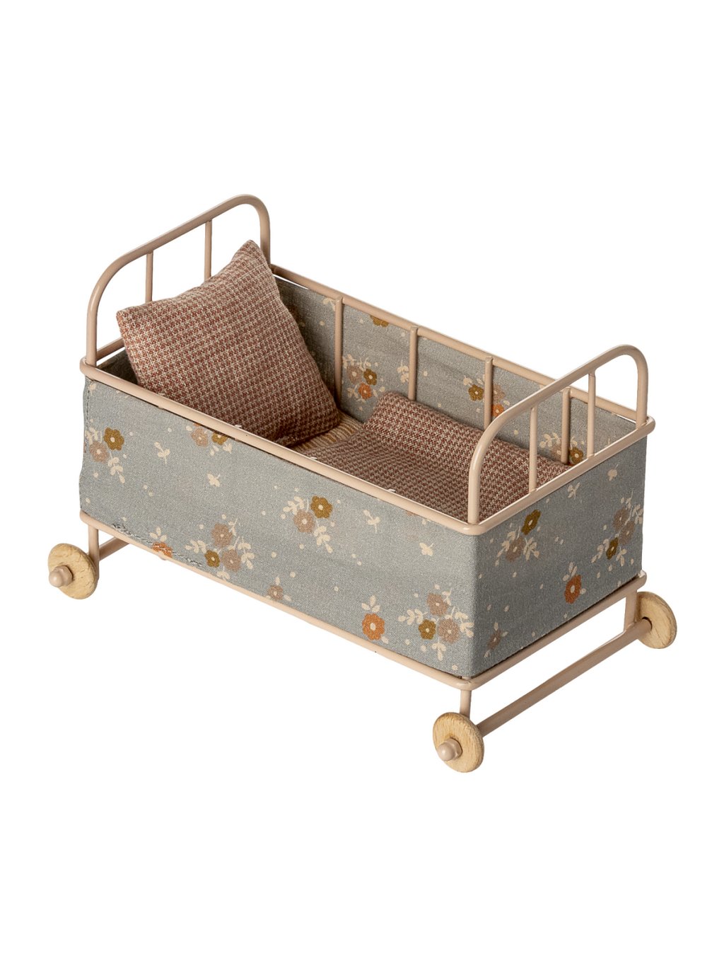 Postýlka na kolečkách kovová s mantinelem růžová Maileg