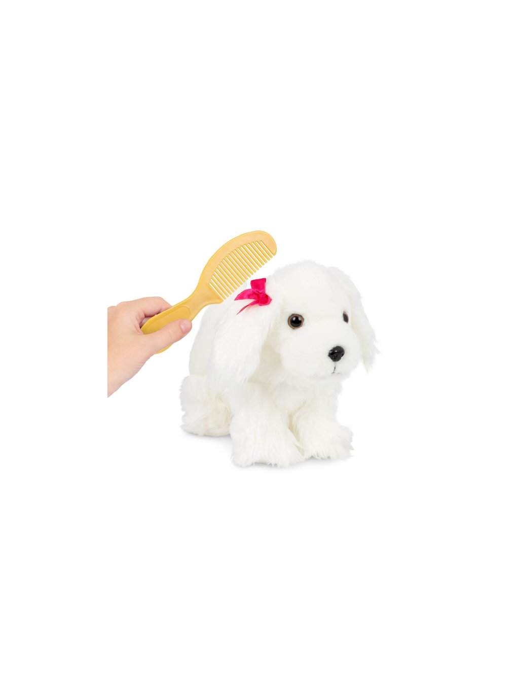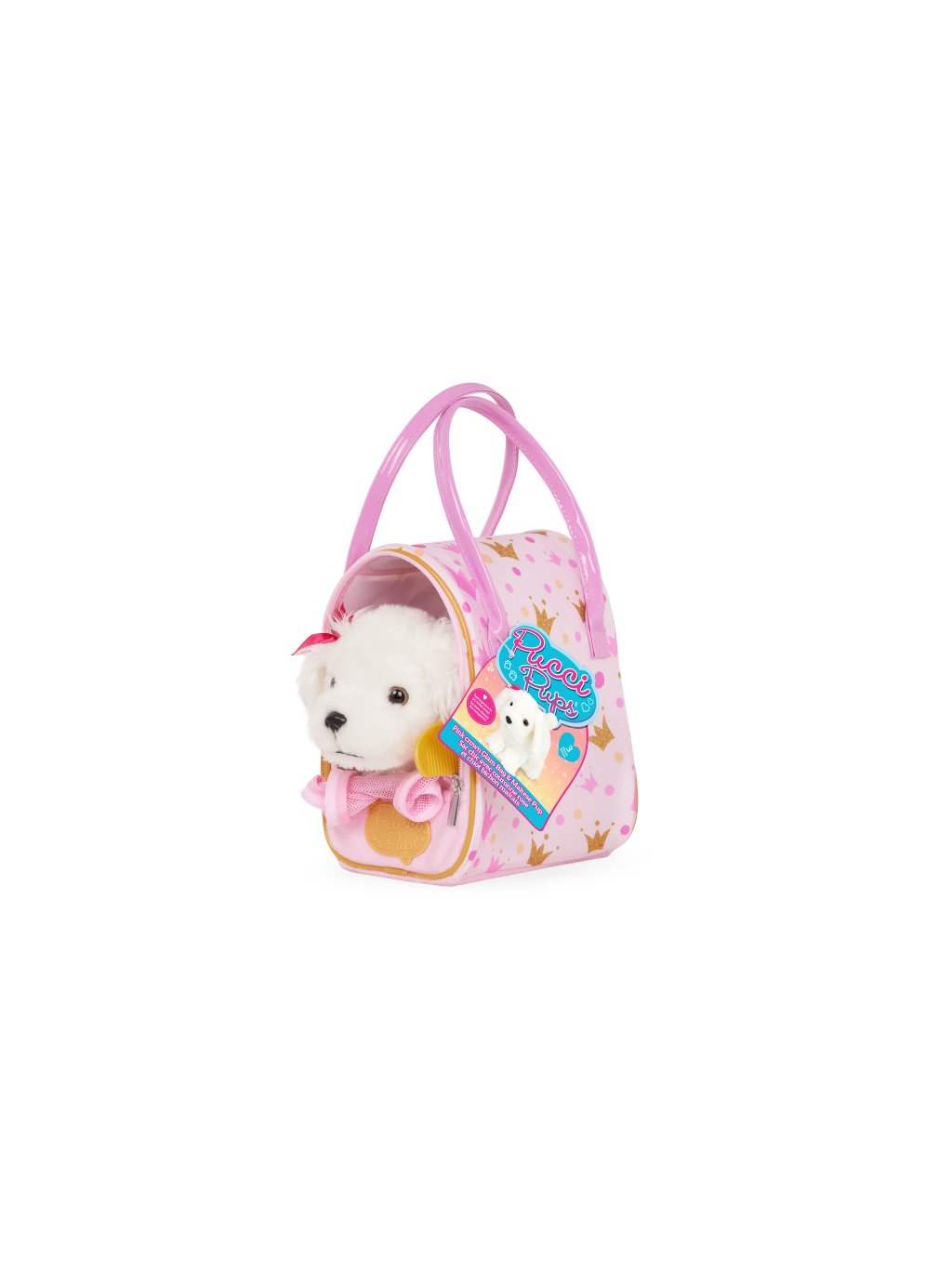 Roztomilé plyšové štěně v kabelce s krásným potiskem je vždy připravené na mazlení i na procházku. Miluje vyčesávání své hebké srsti hřebínkem a díky kabelce si jej vaše dítě může vzít kamkoli. Kabelka má průhlednou přední stěnu ze síťoviny s otevíráním na zip, aby štěňátko při přenášení vidělo na svět.