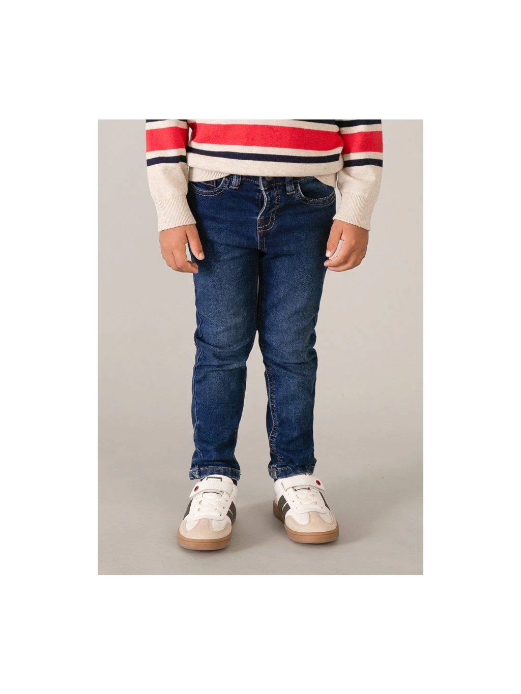 Mayoral chlapecké měkké rifle s elastanem. Rifle mají na přední i zadní straně 2 kapsy, zapínání je na cvok a zip. V pase jsou regulační gumičky. Rifle mají normální střih.