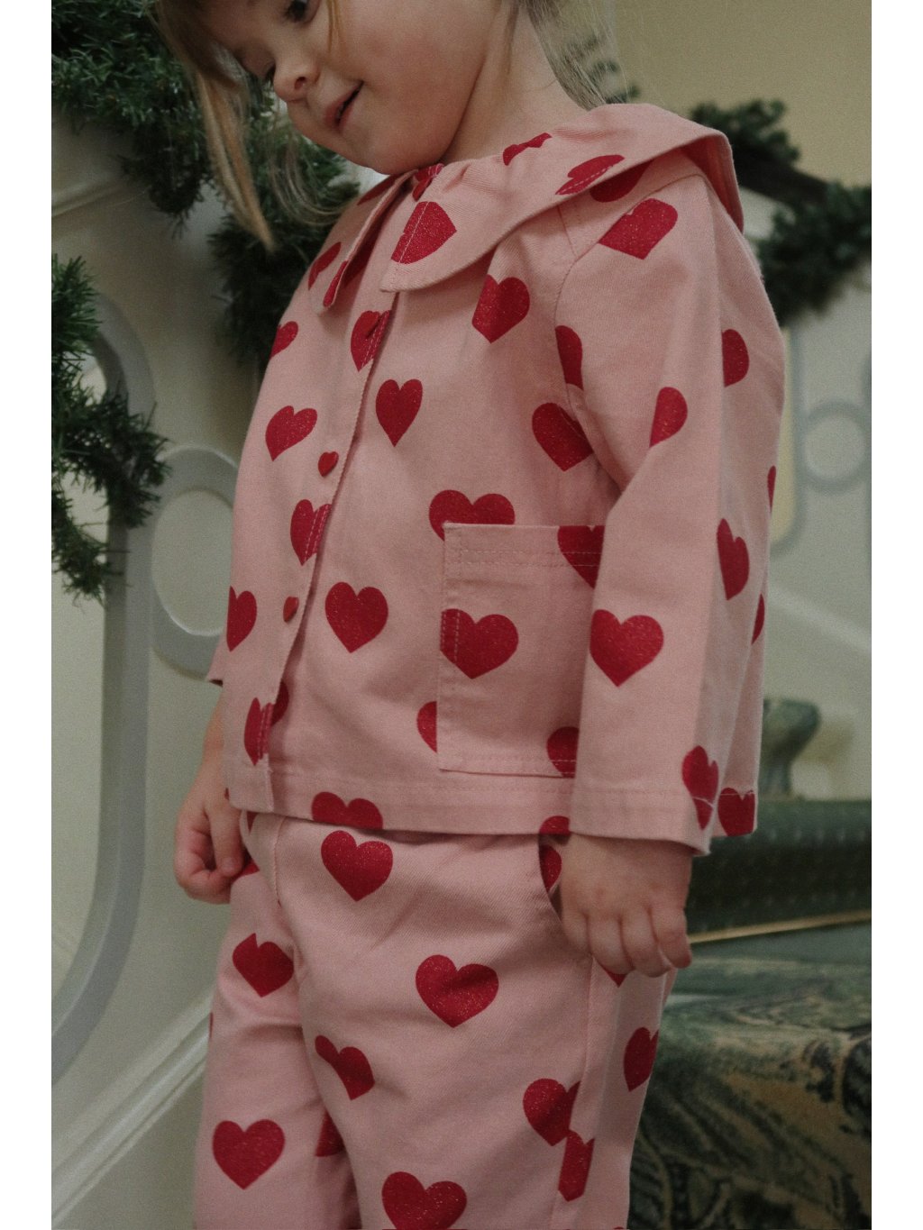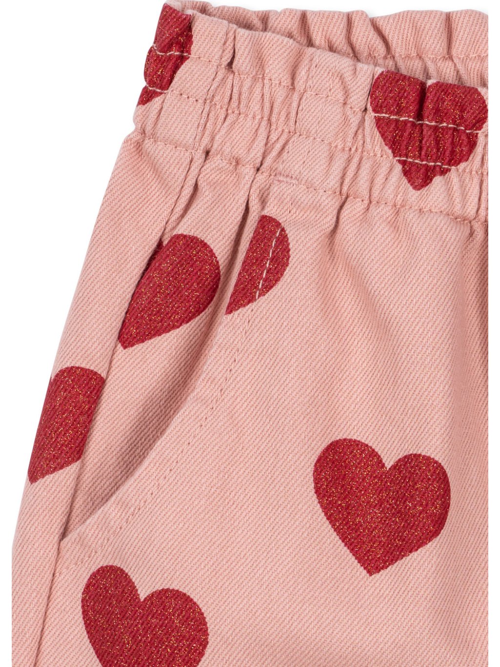 Nádherné dívčí natahovací růžové rifle s motivem třpytivých srdíček. Rifle jsou z velmi příjemné rifloviny, v pase mají pružnou gumu a dvě funkční kapsy. Rifle jsou volnějšího střihu.