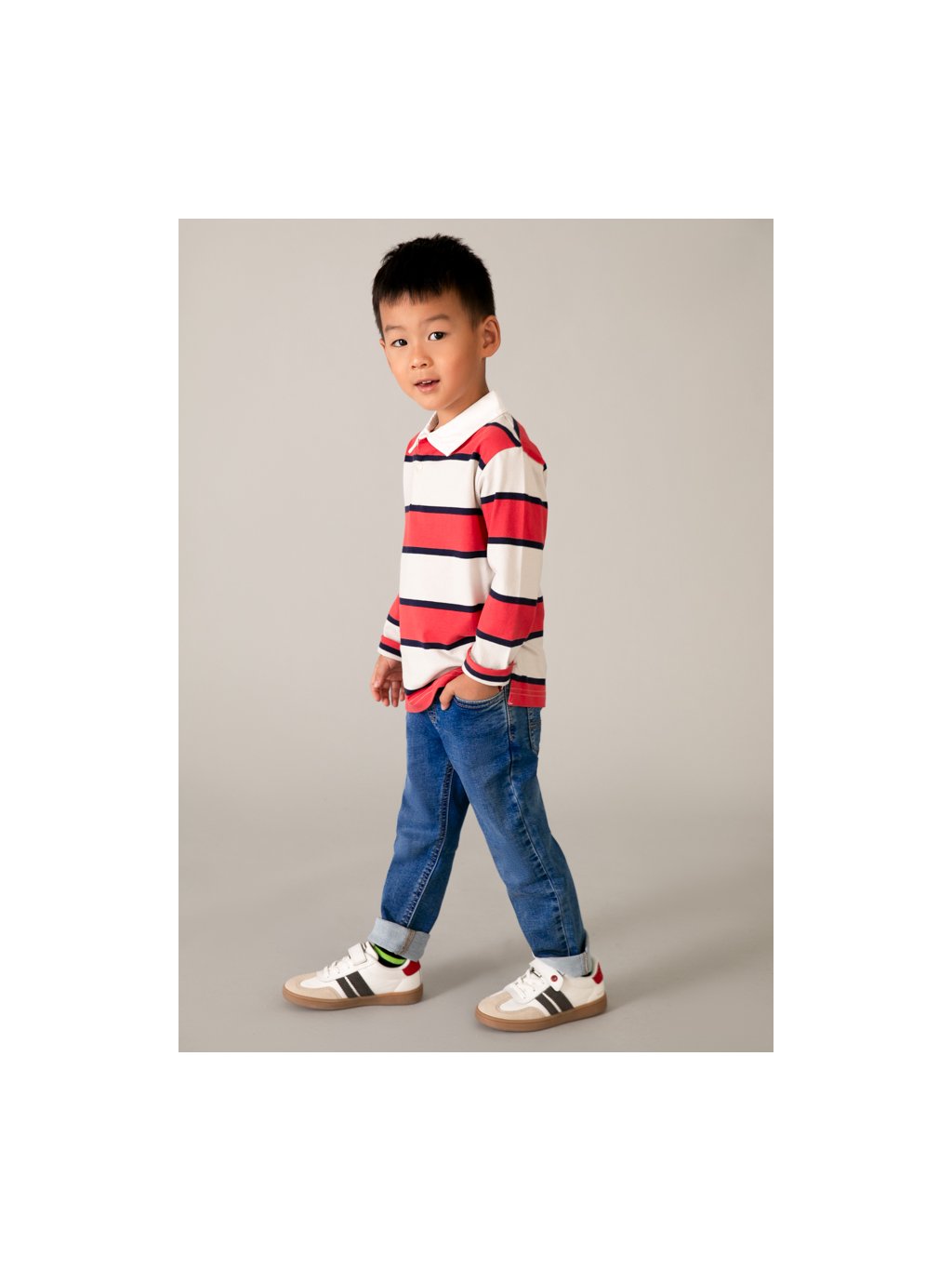 Mayoral chlapecké natahovací rifle. Rifle jsou ze skvělé, odlehčené rifloviny, v pase jsou tkaničky na stažení. Na přední i zadní straně jsou 2 funkční kapsy.