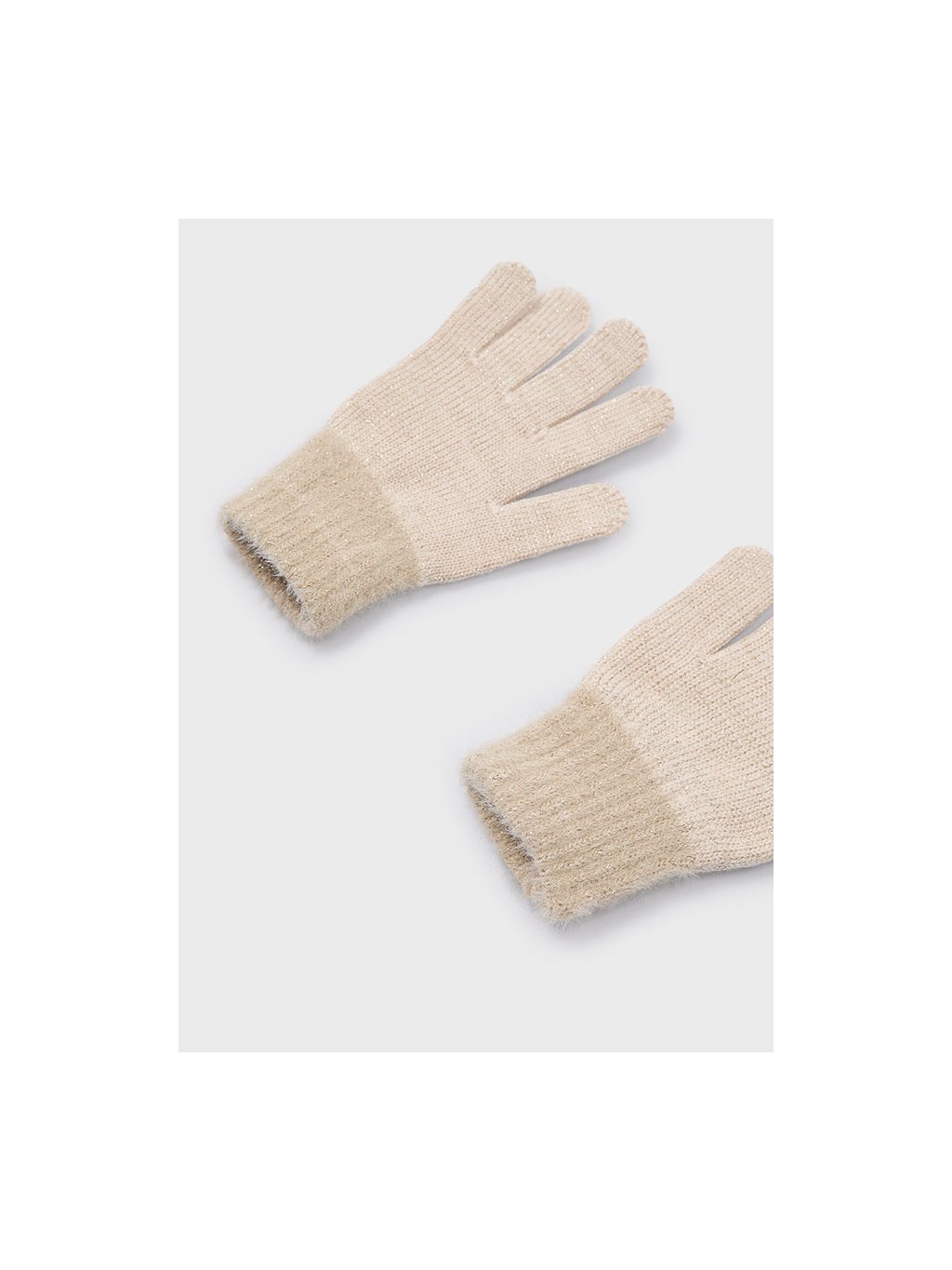 Rukavice prstové pletené s chloupkem béžové MINI Mayoral