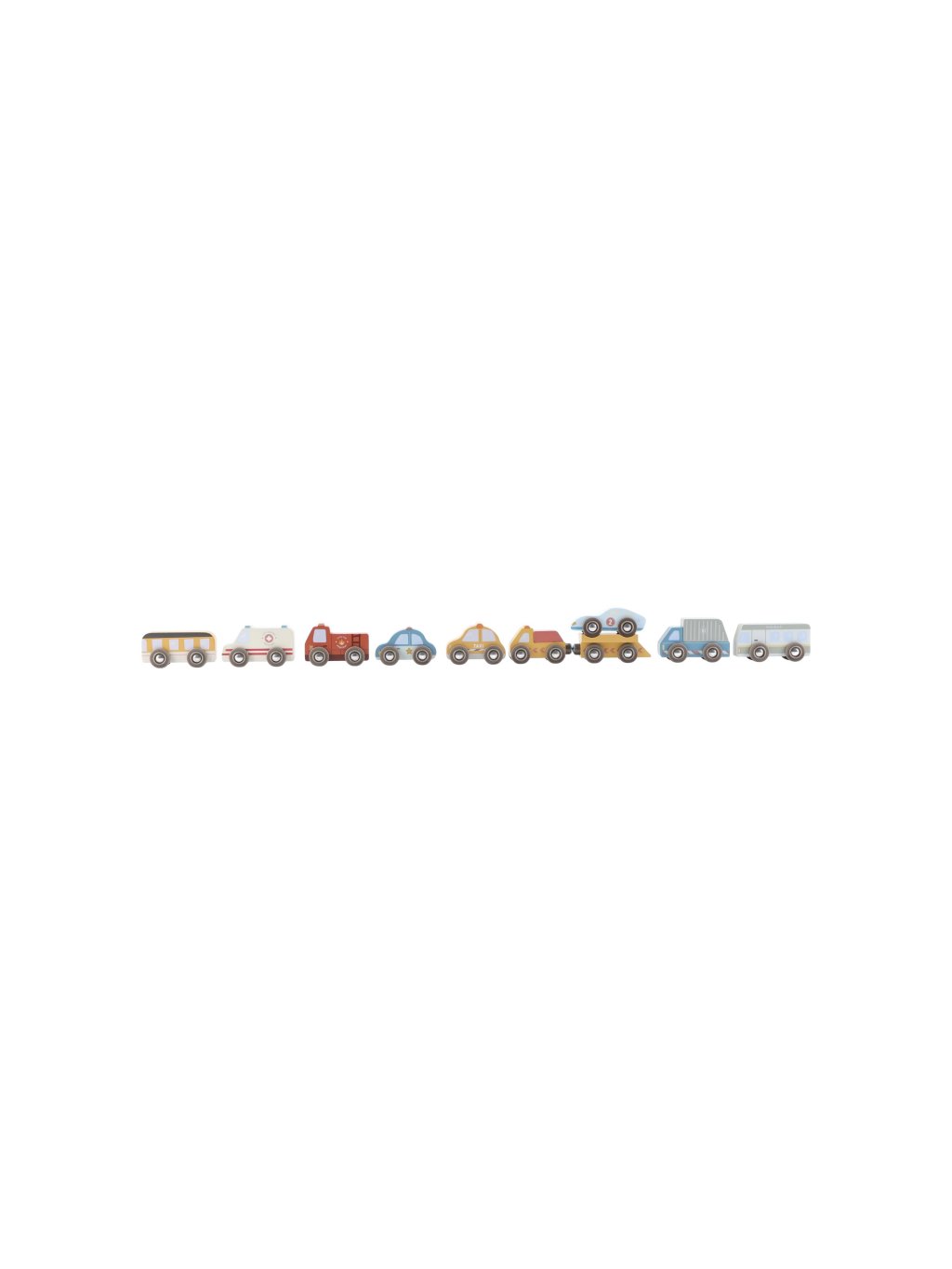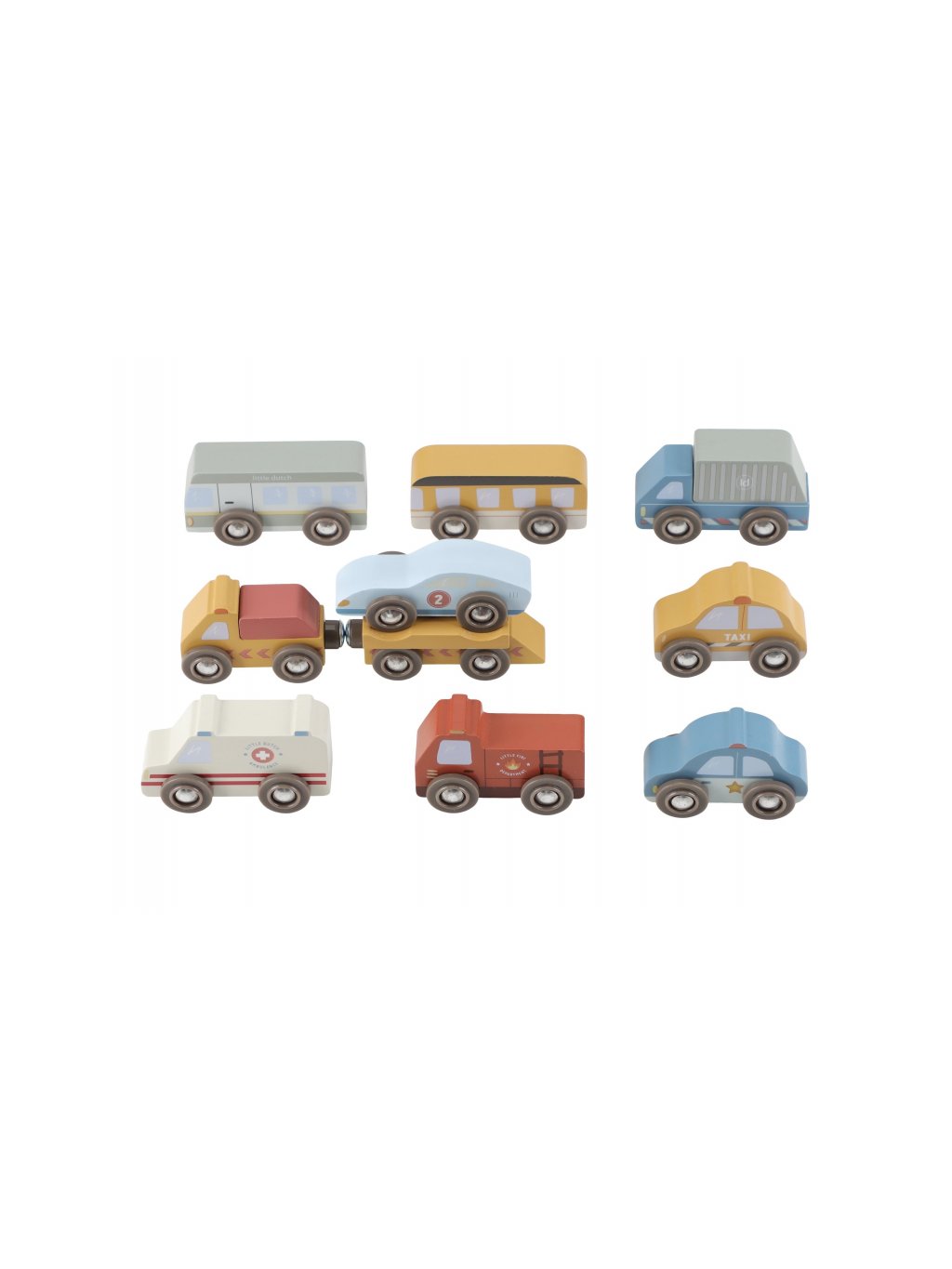 Město je pořád v pohybu! Tato sada dřevěných vozidel různých profesí je připravena vyrazit do akce a pomáhat tam, kde je třeba. Hasičské auto vyjíždí k požáru, policejní vůz hlídkuje po městě a nákladní auto dováží zásoby – každý den přináší nové dobrodružství. Autíčka jsou kompatibilní s vláčkodráhou Little Dutch a jejími rozšiřujícími sadami. Děti si tak mohou vytvořit vlastní město plné akce, příběhů a pohybu. Hra podporuje představivost, jemnou motoriku a samostatné vyprávění.