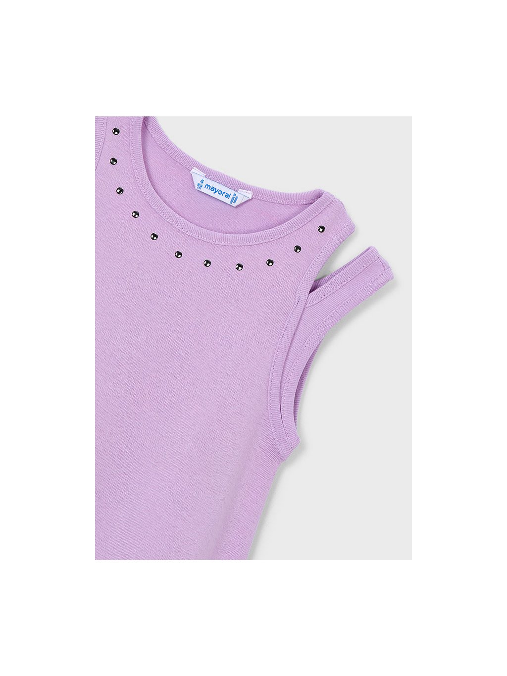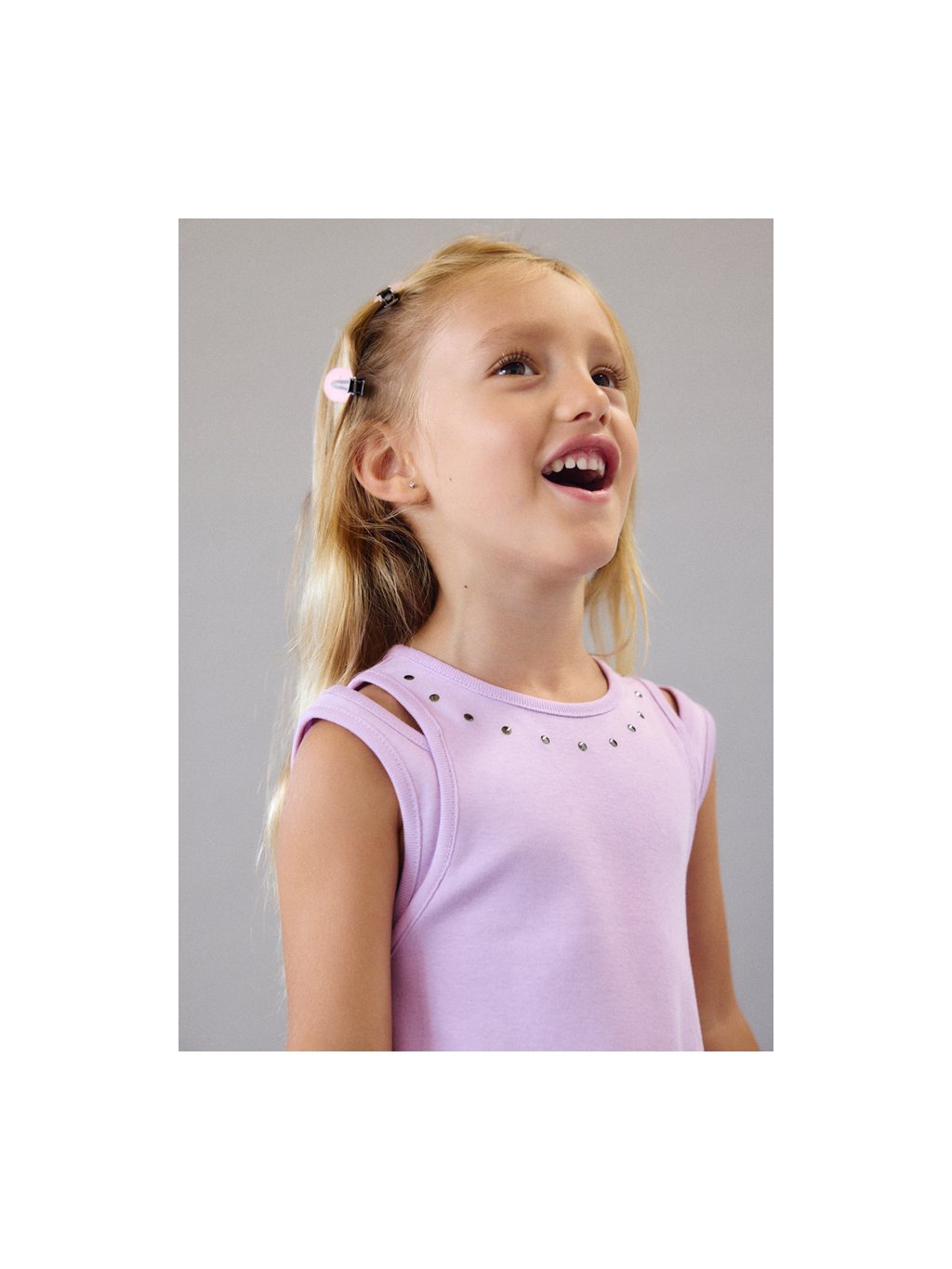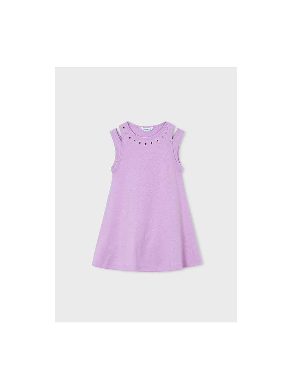 Šaty na ramínka bavlněné s cvoky lila MINI Mayoral