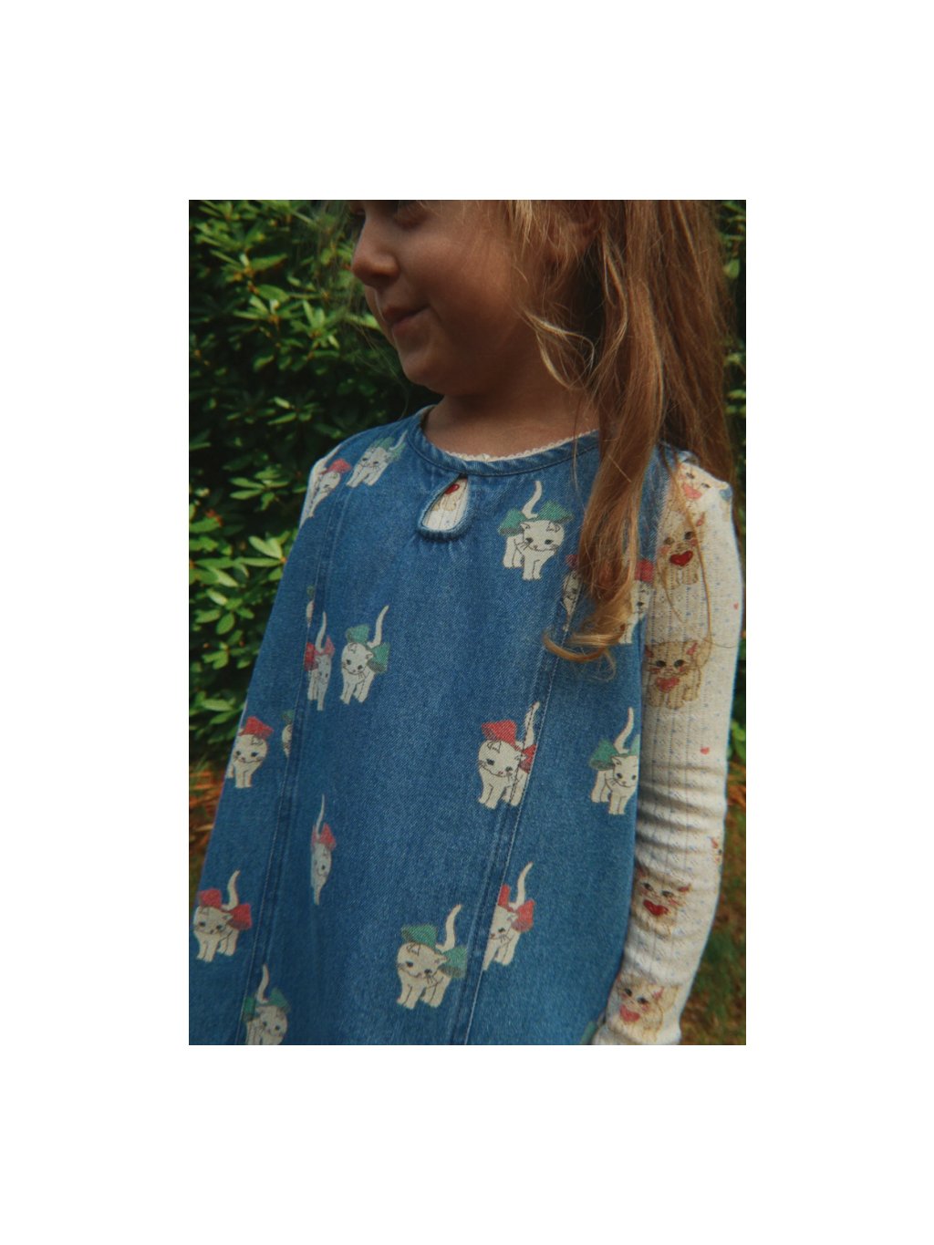 Nádherné riflové šaty s motivem kočiček. Šaty jsou z velmi příjemné, odlehčené rifloviny, u krku je kulatý výstřih s průstřihem.