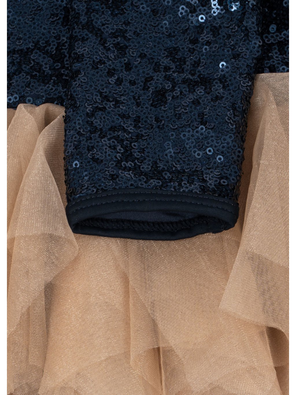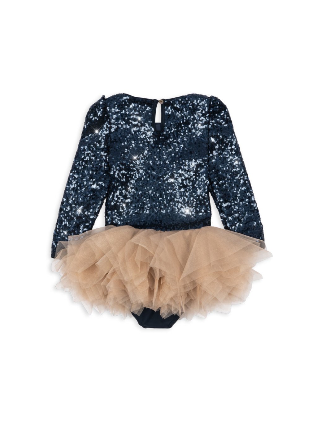 Nádherné body s tylovou sukýnkou nejen pro malé baletky s hlubokým výstřihem na zádech a nabíranými rukávy. Sukýnka má několik vrstev zlatého tylu.