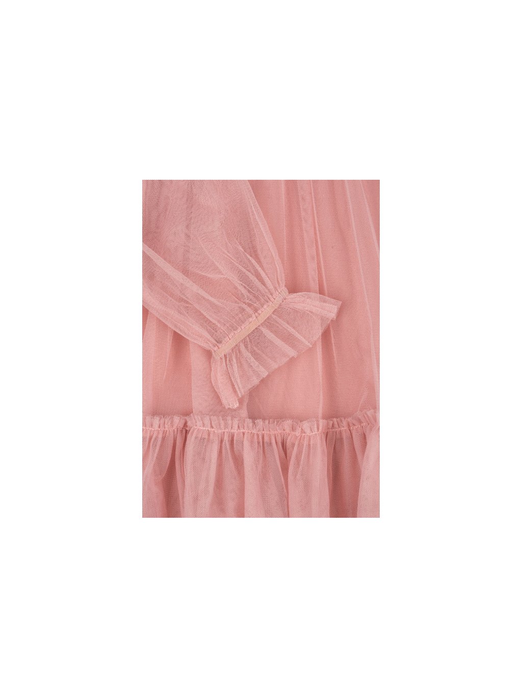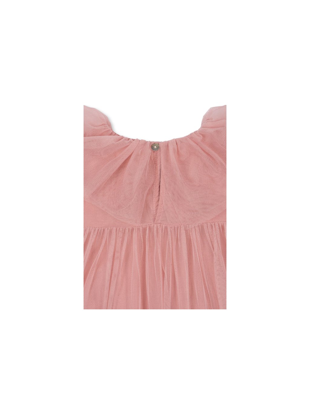 Nádherné tylové šaty s límečkem a ozdobnou mašlí vpředu. Šaty mají zapínání na zadní straně. Šaty jsou volnějšího střihu a jsou podšité bavlněnou podšívkou.