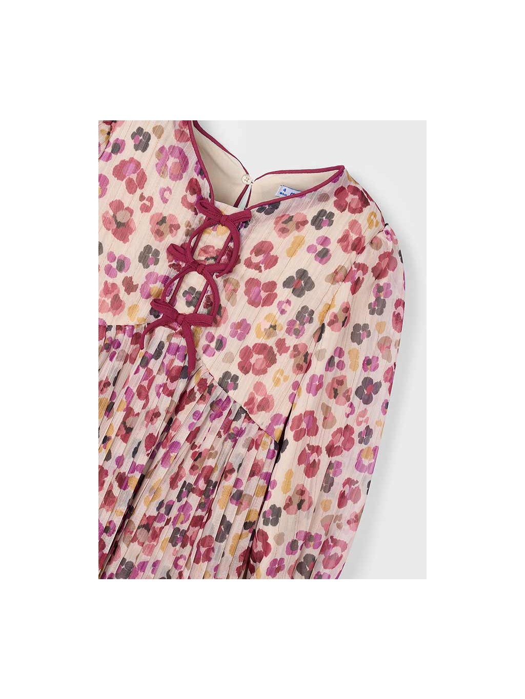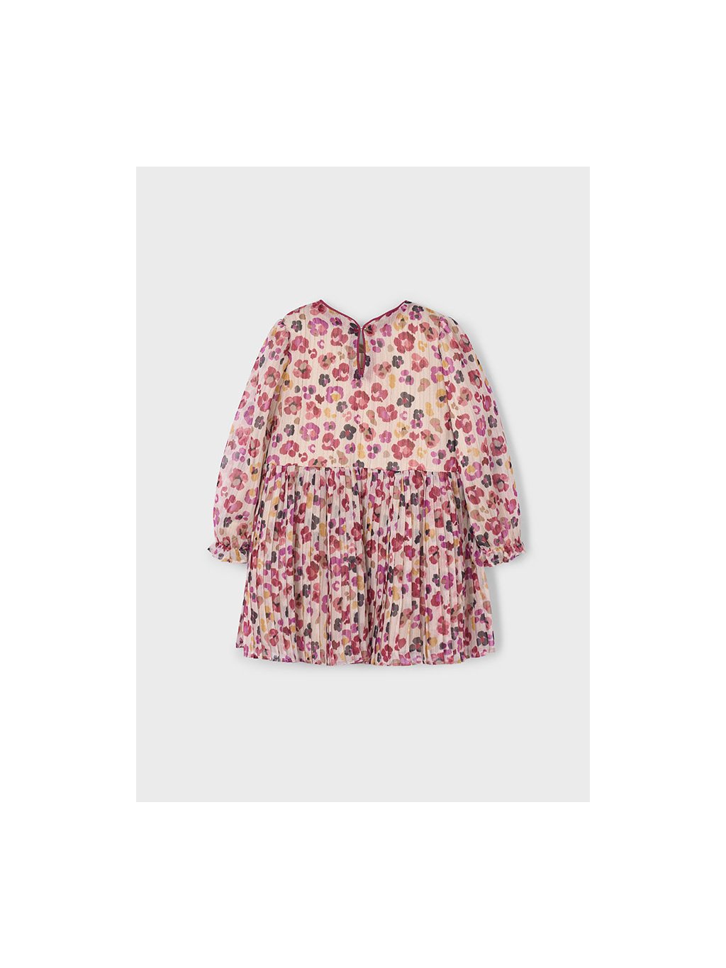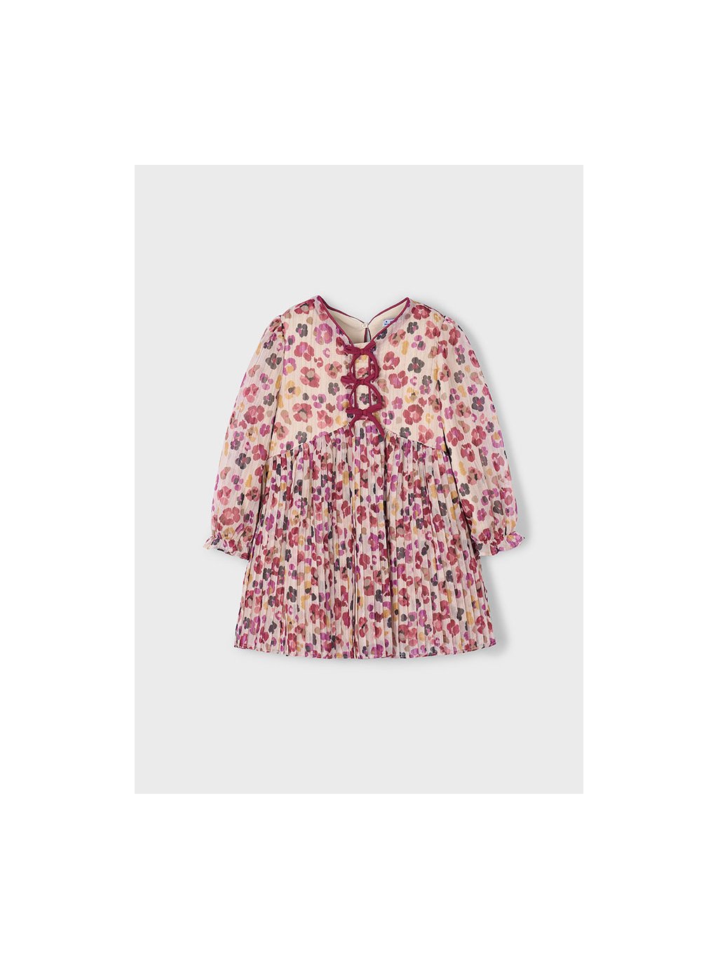 Šaty s dlouhým rukávem šifónové kytičky vínové MINI Mayoral