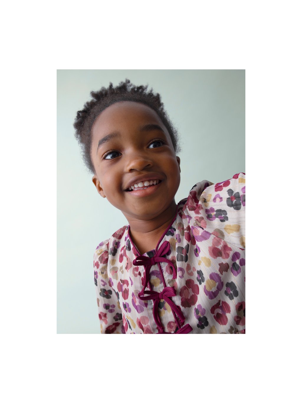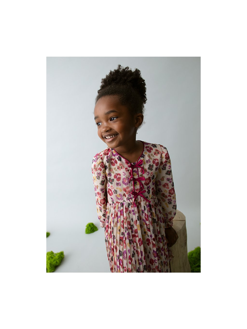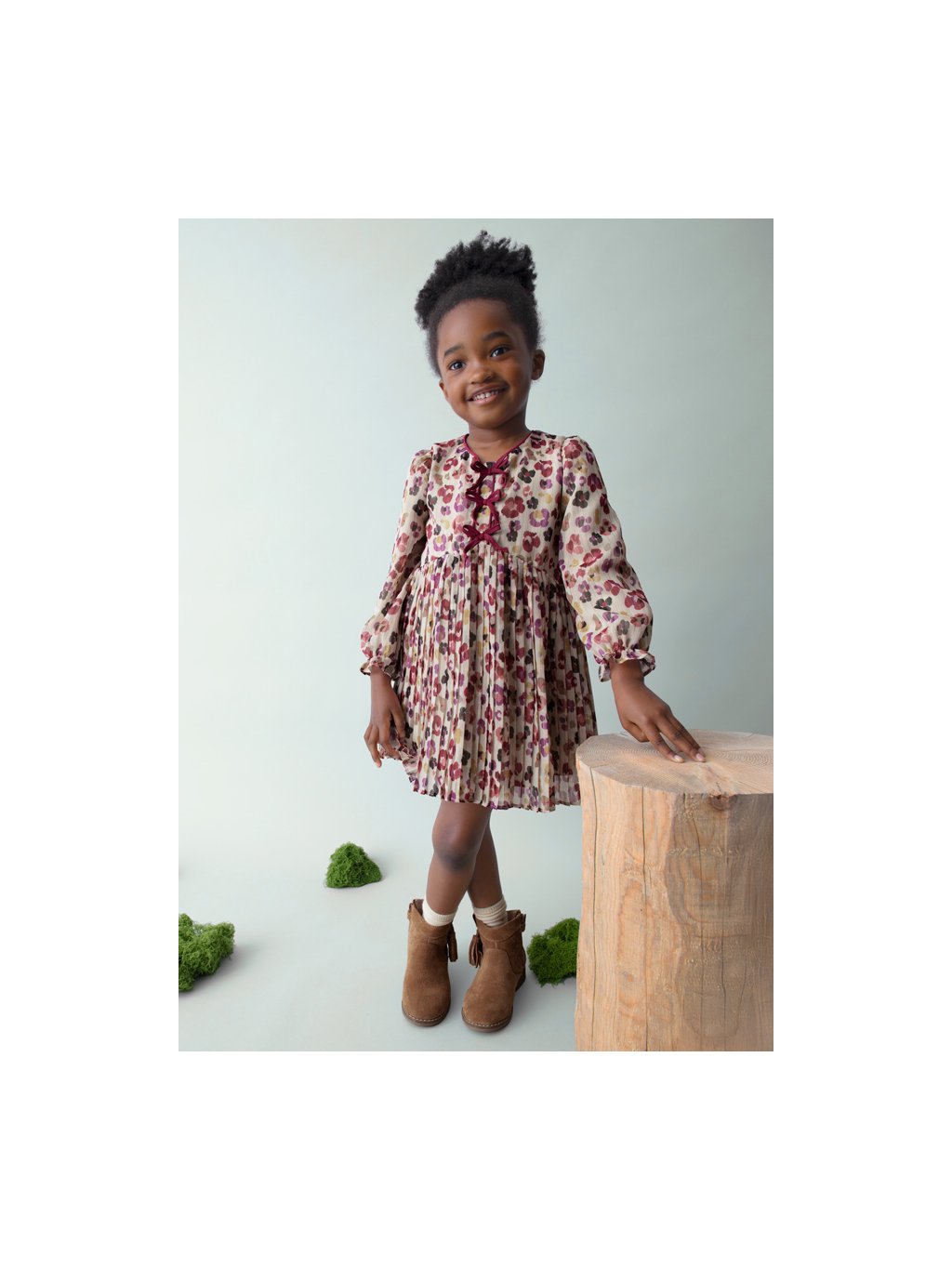 Šaty s dlouhým rukávem šifónové kytičky vínové MINI Mayoral