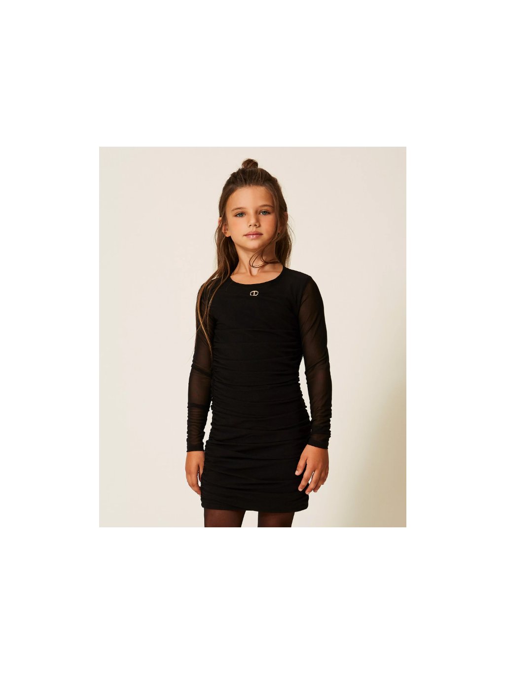 Šaty s dlouhým rukávem tylové černé Twinset Girl