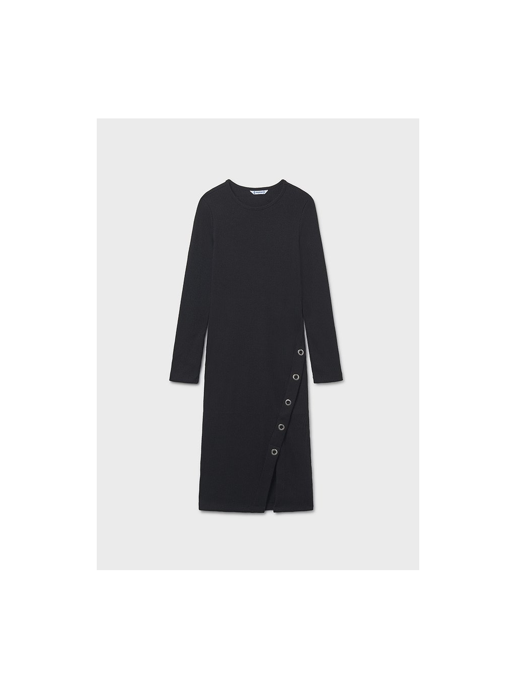 Mayoral dívčí pohodlné bavlněné šaty na každodenní nošení. Šaty jsou z velmi příjemného žebrovaného materiálu, u krku mají kulatý výstřih a ve spodní části je rozparek. Délka šatů je pod kolena.