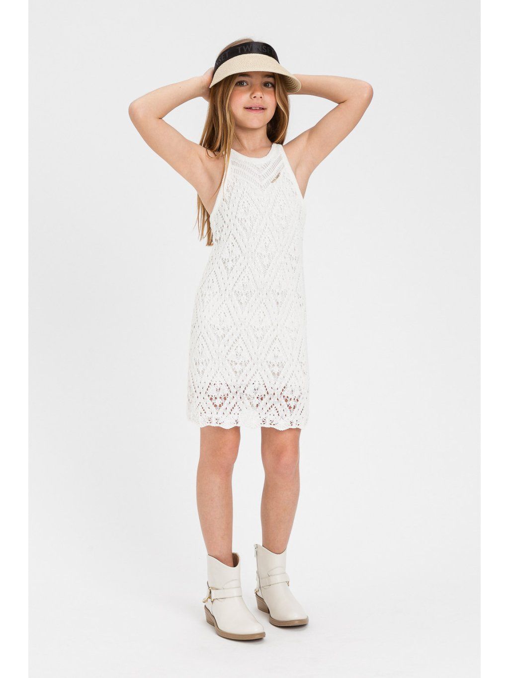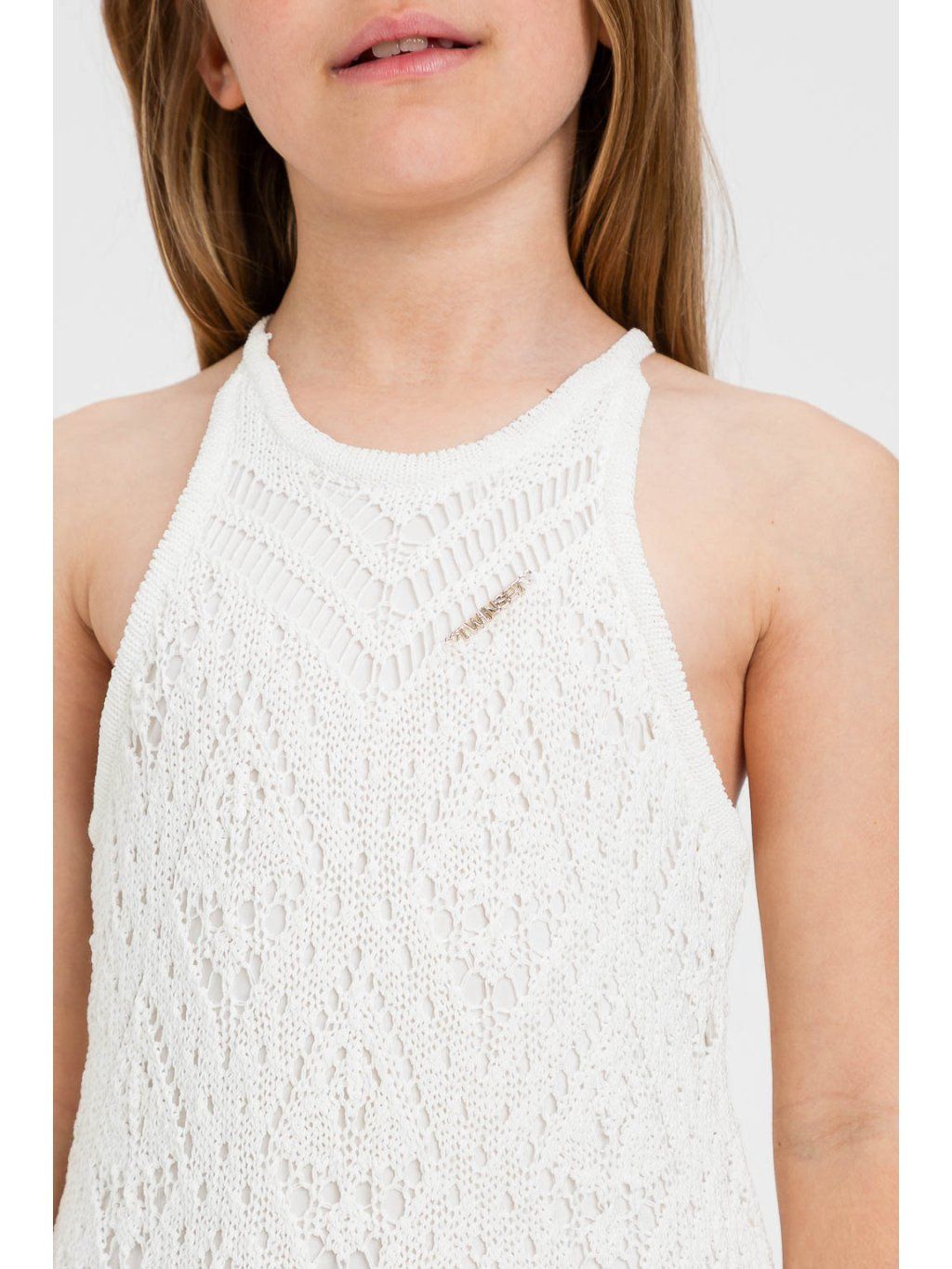 Šaty s háčkovanou aplikací smetanové Twinset Girl