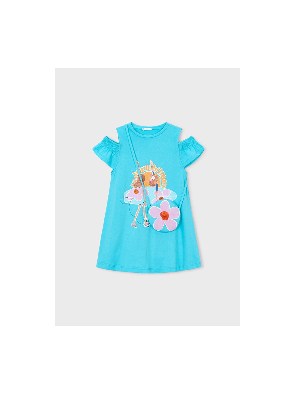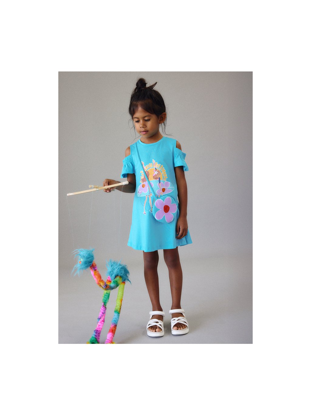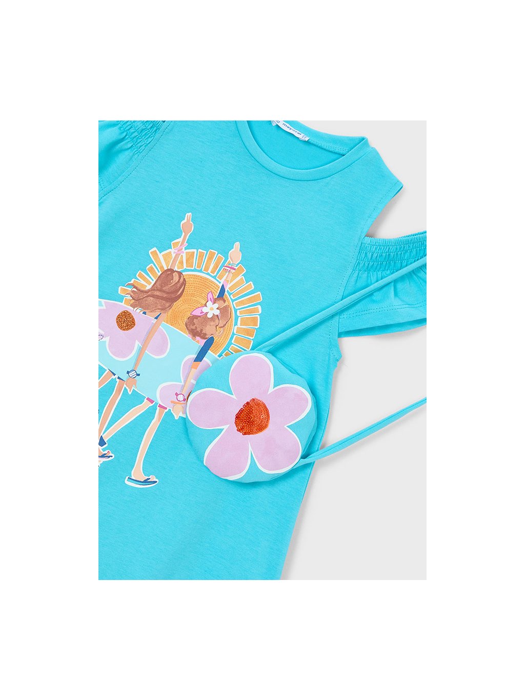 Šaty s krátkým rukávem a kabelkou SURF GIRL modré MINI Mayoral
