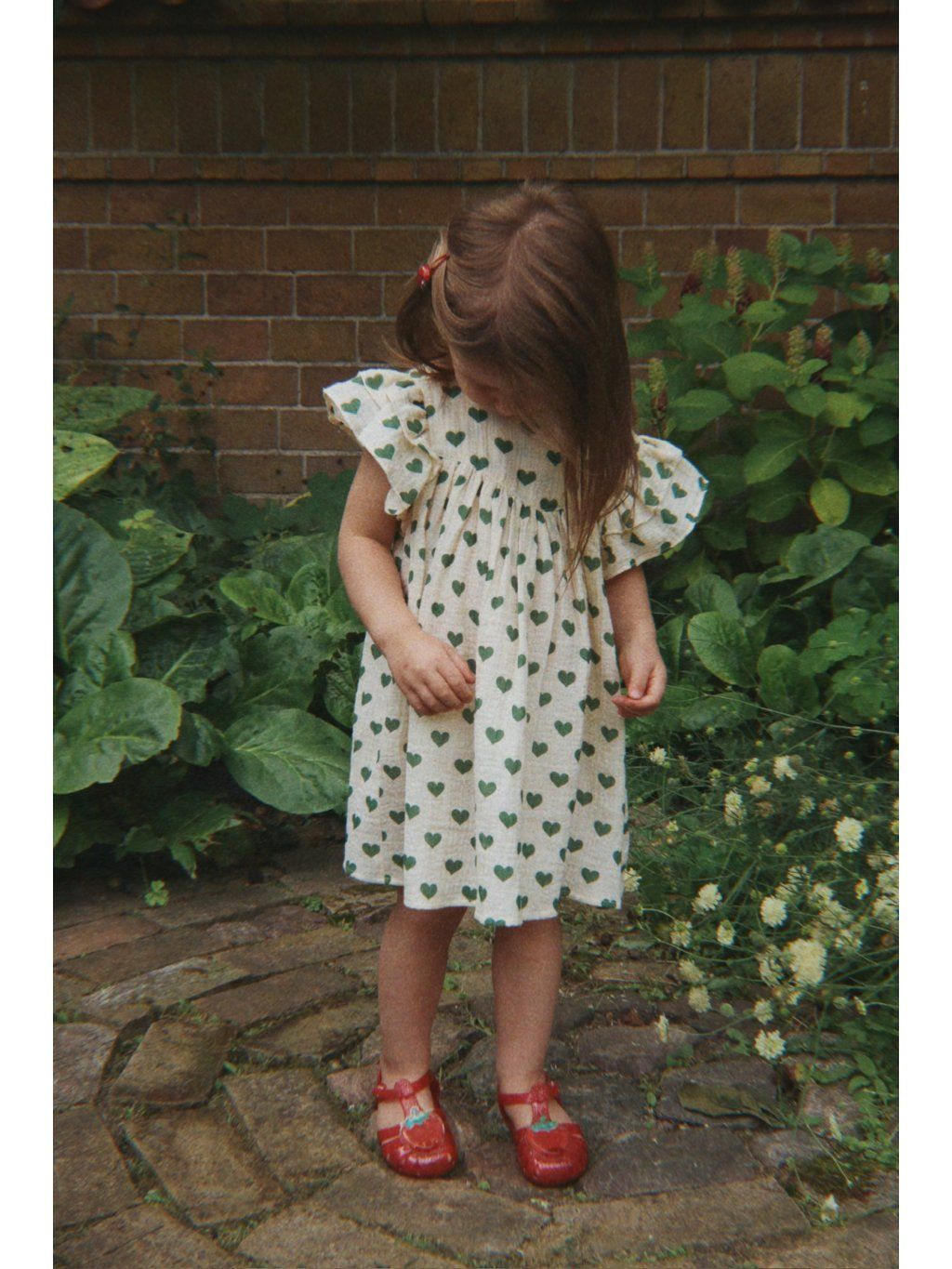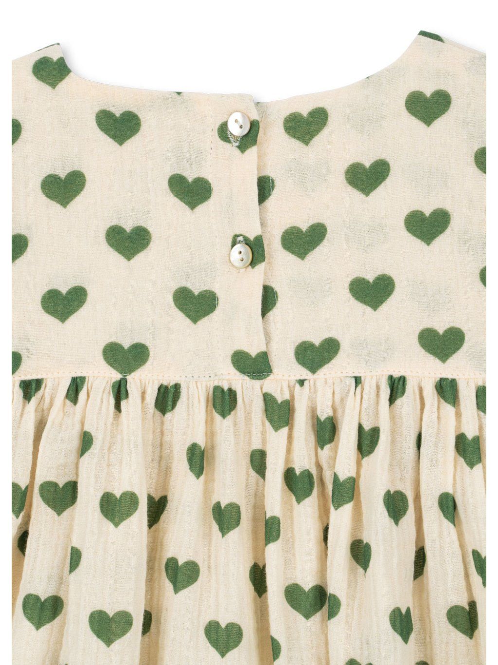 Nádherné mušelinové šatičky s motivem srdíček. Šaty jsou z velmi příjemného materiálu, u krku je kulatý výstřih, šaty jsou volnějšího střihu.