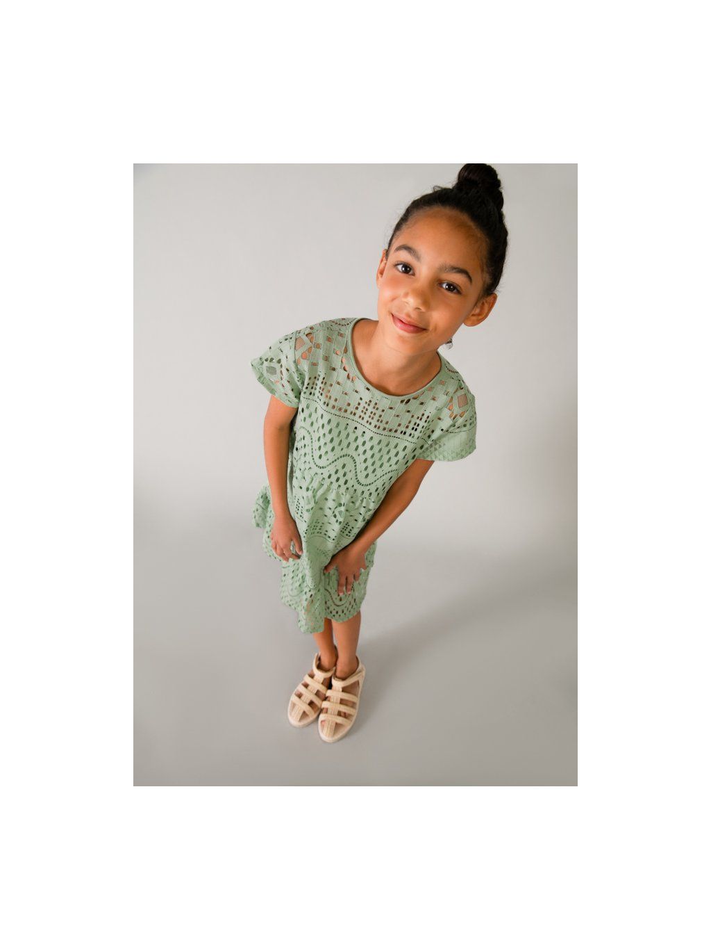 Dívčí mintové šaty s krátkým rukávem. Šaty jsou volnějšího střihu, délka je ke kolenům.