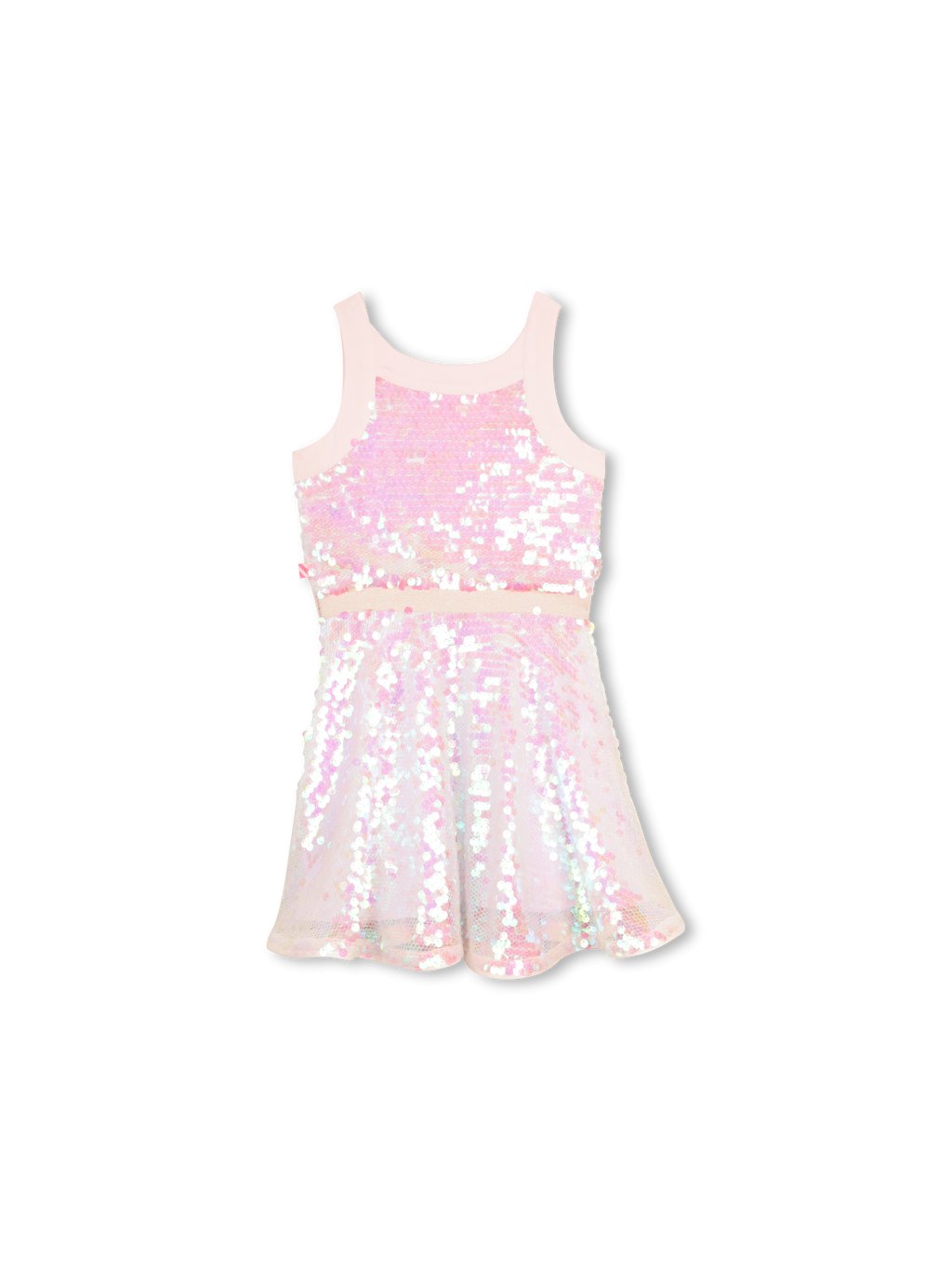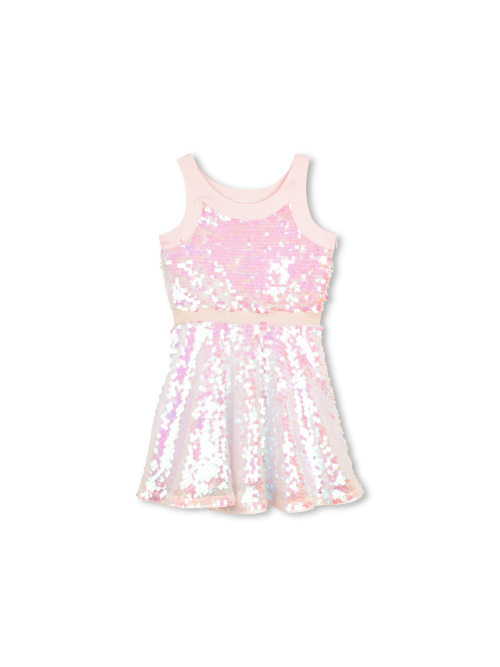 Krásní flitrové šatičky Billieblush. Šatičky nemají rukáv, jsou podšité pro větší pohodlí, v pase mají elastickou gumu díky které vypadají hezky na postavě. Šaty mají zapínaní na zadní straně. Šatičky odrážejí světlo při každém pohybu vytvářejí tak kouzelný efekt.