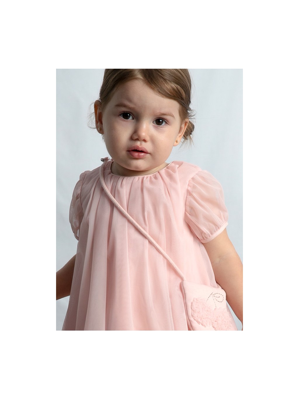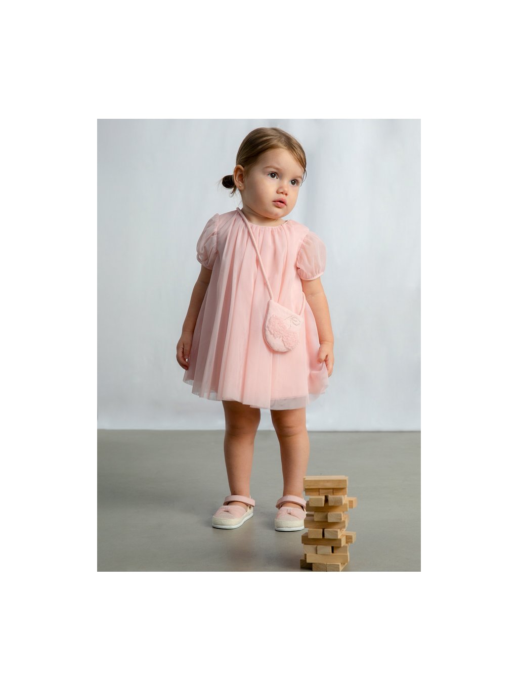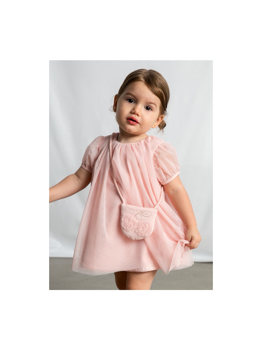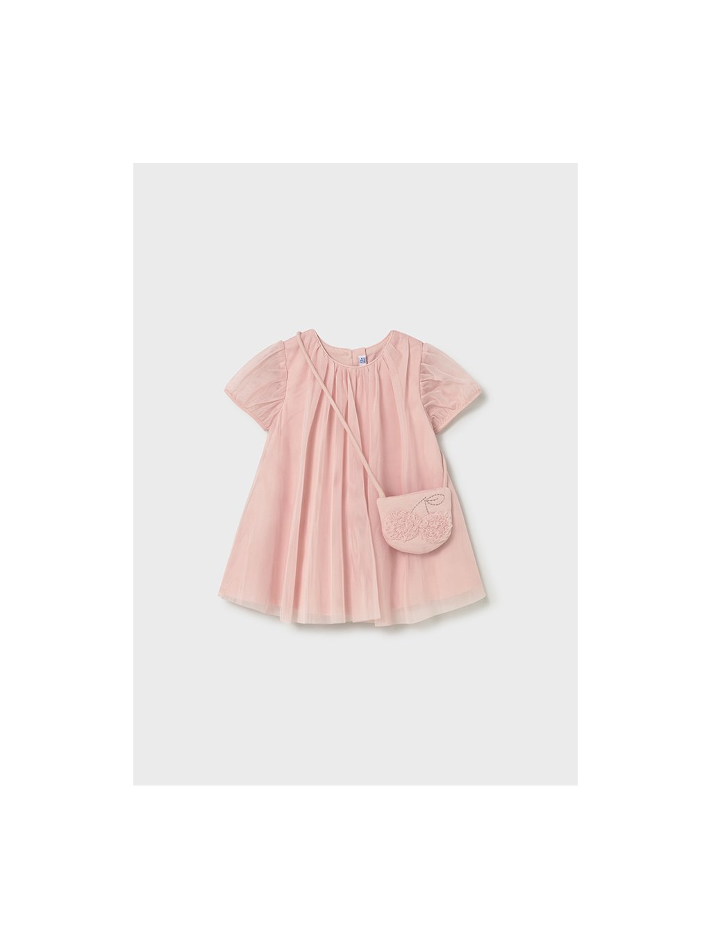 Šaty tylové s krátkým rukávem a kabelkou CHERRY růžové BABY Mayoral