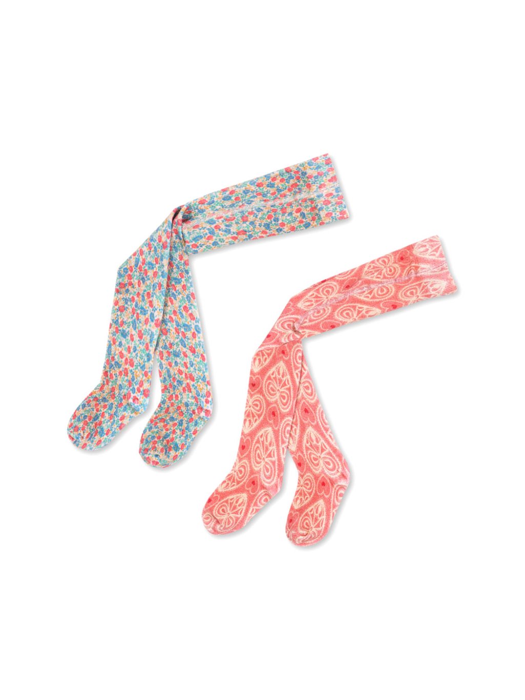 Set dvou dívčích punčocháčů s motivem kytiček a srdíček. Oboje punčocháče jsou z velmi příjemného úpletu. Jedny punčocháče jsou se vzorem kytiček, druhé jsou se srdíčky.