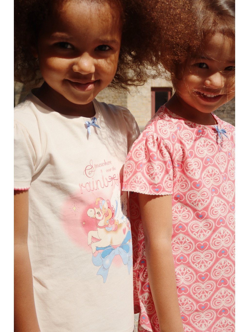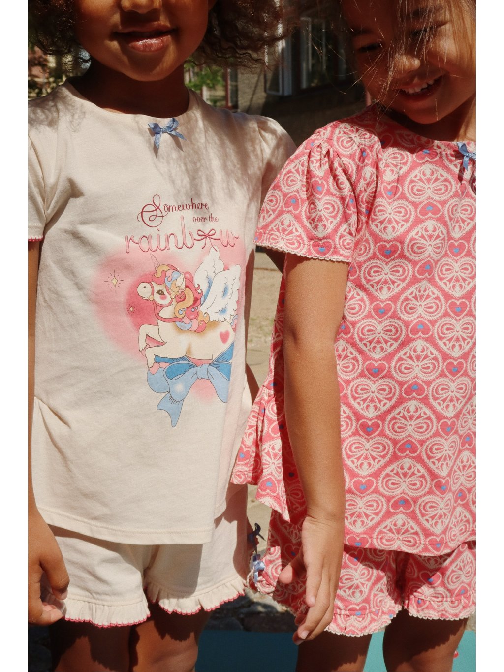 Set bavlněného trička a šortek s motivem srdíček. Oba kousky jsou z příjemného, bavlněného materiálu. Tričko má u krku kulatý výstřih a roztomilý tisk jednorožce. Každý kus oblečení se dá nosit zvlášť, dohromady však vypadá nejlépe.