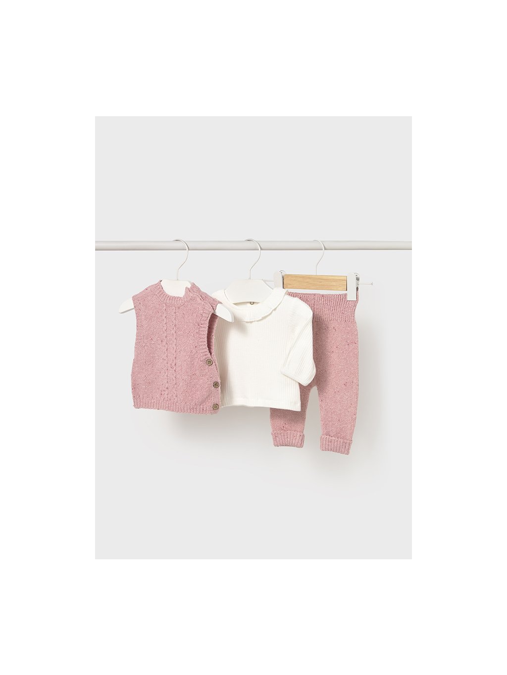 Set úpletový vestičky, trika a kalhotek růžový NEWBORN Mayoral