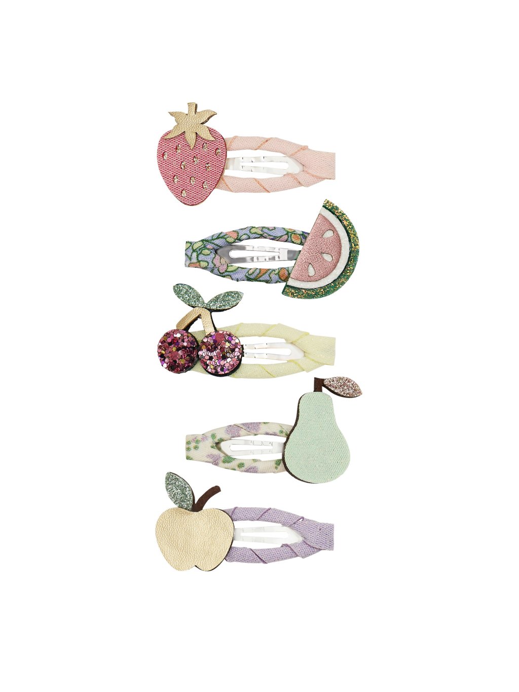 Veselé, barevné dětské sponky s motivem oblíbeného ovoce. Každá sponka má na sobě jiný druh ovoce.