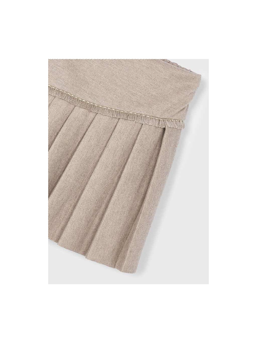 Mayoral dívčí látkový skládaný skort s leskem. V pase má skort pružnou, měkkou gumu. Na přední straně má třepení, sklady jsou z obou stran.
