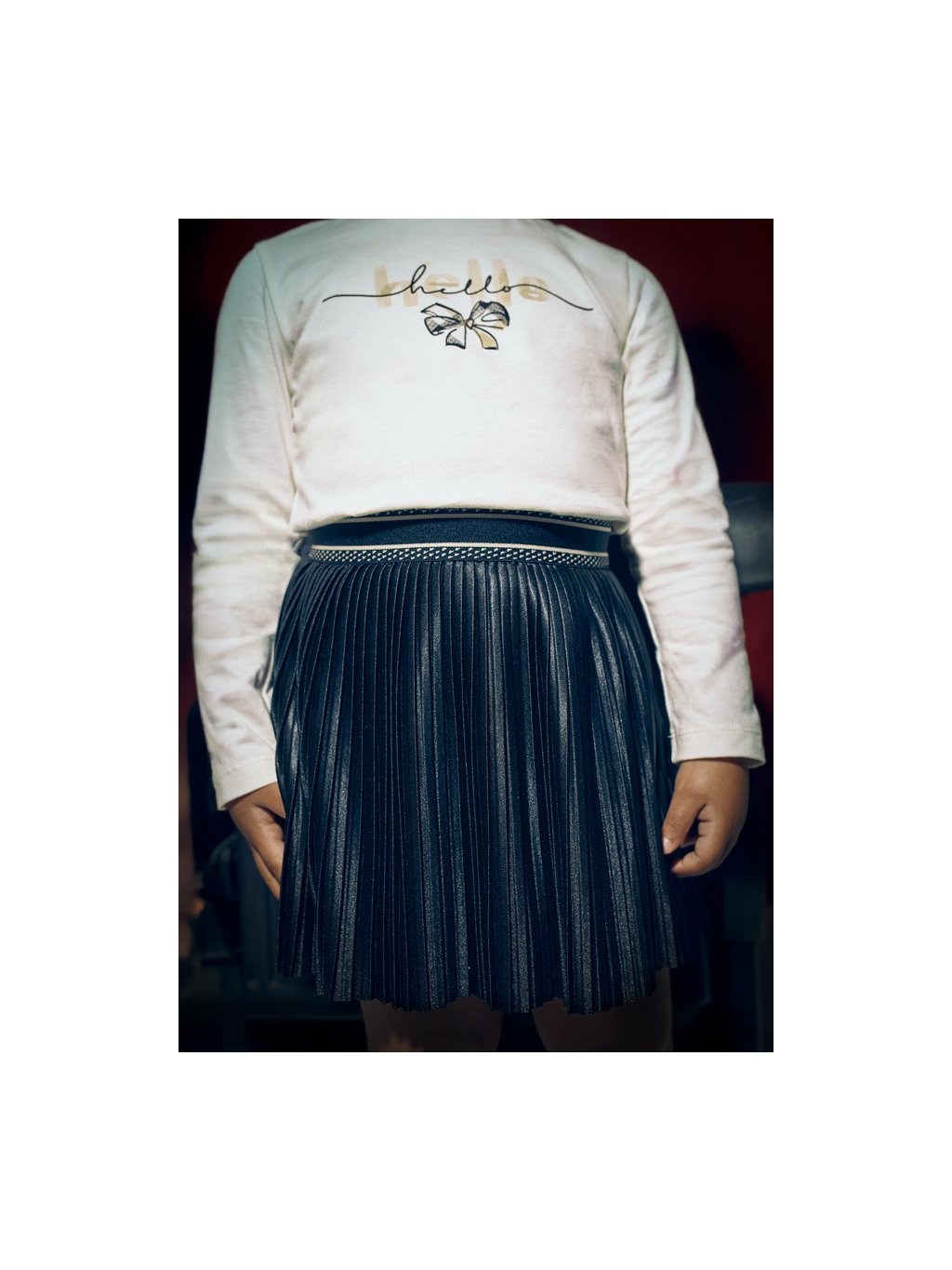 Mayoral dívčí skládaná sukýnka s leskem. V pase má sukně ozdobnou pružnou, měkkou gumu. Sukně je vhodná na různé společenské akce, ale i na běžné nošení.