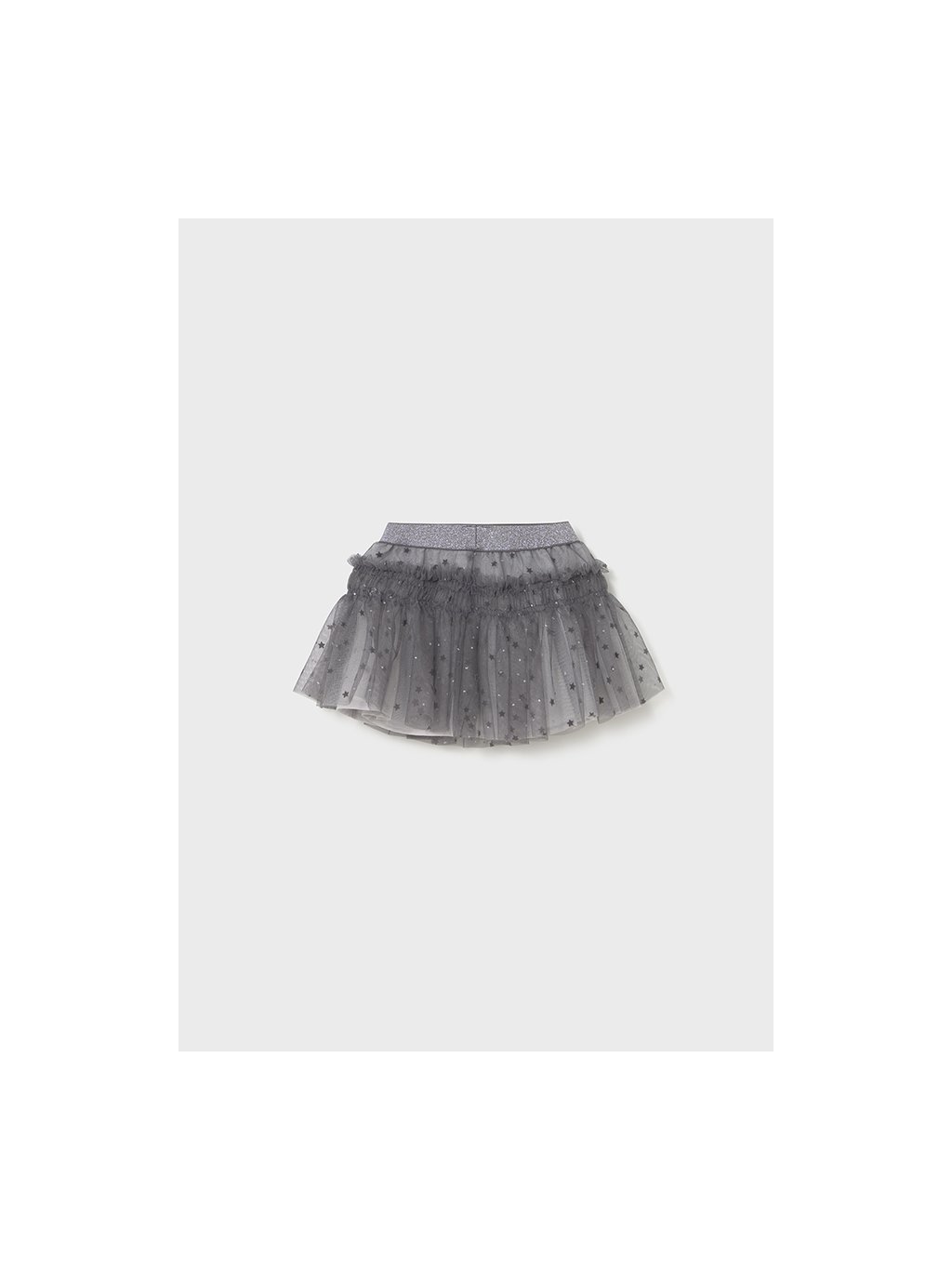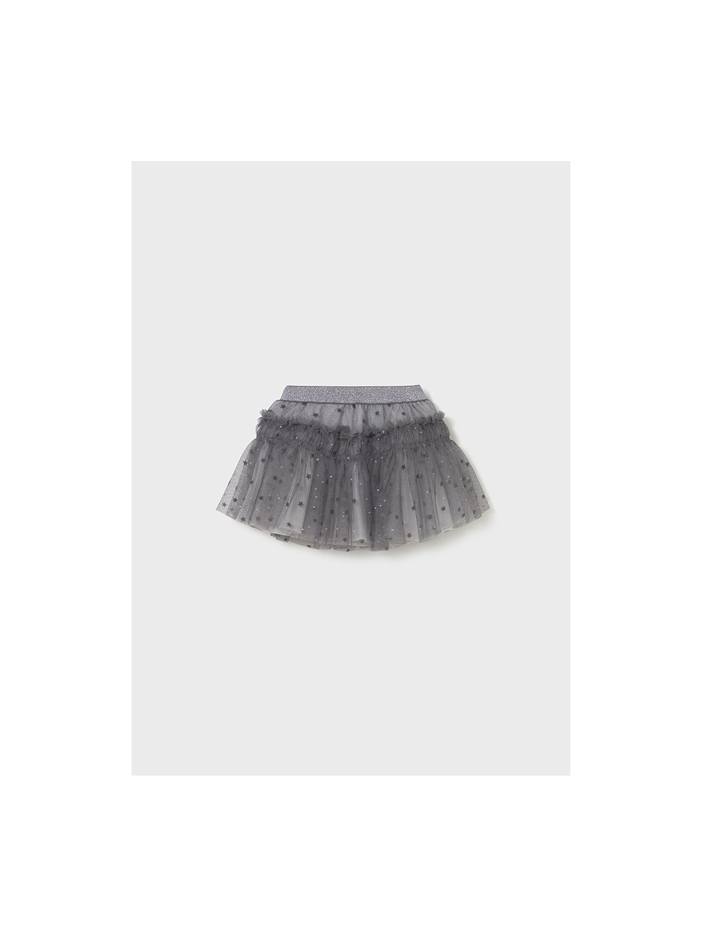 Mayoral dívčí tylová řasená sukýnka s hvězdičkami. Sukně má bavlněnou podšívku. V pase je ozdobná, stříbrná, měkká guma.