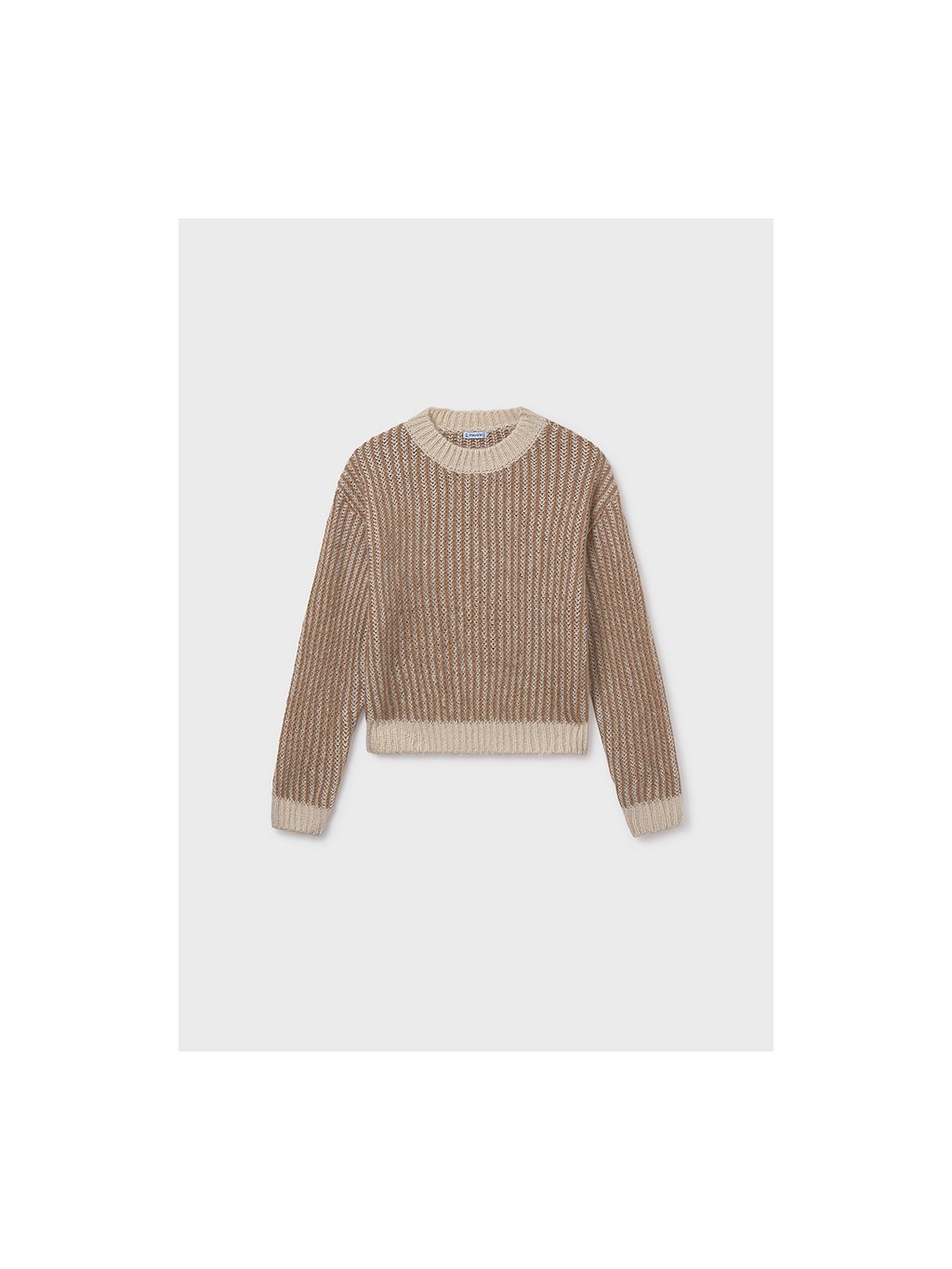 Mayoral dívčí svetr s volnějšími rukávy. Svetr je z velmi příjemného úpletu, u krku je kulatý výstřih. Svetr je lehce kratší délky, je vhodný ke spodku s vyšším pasem.