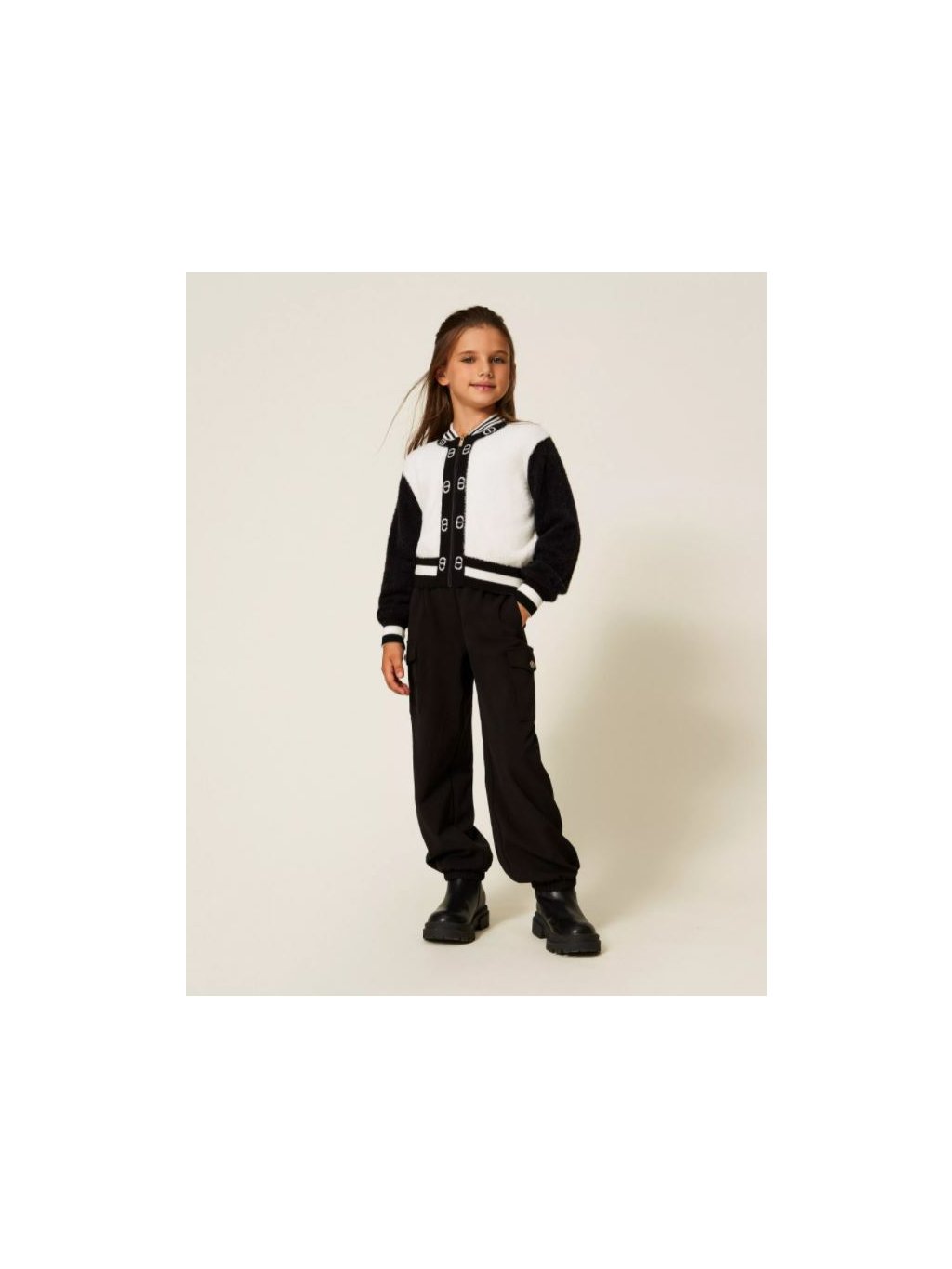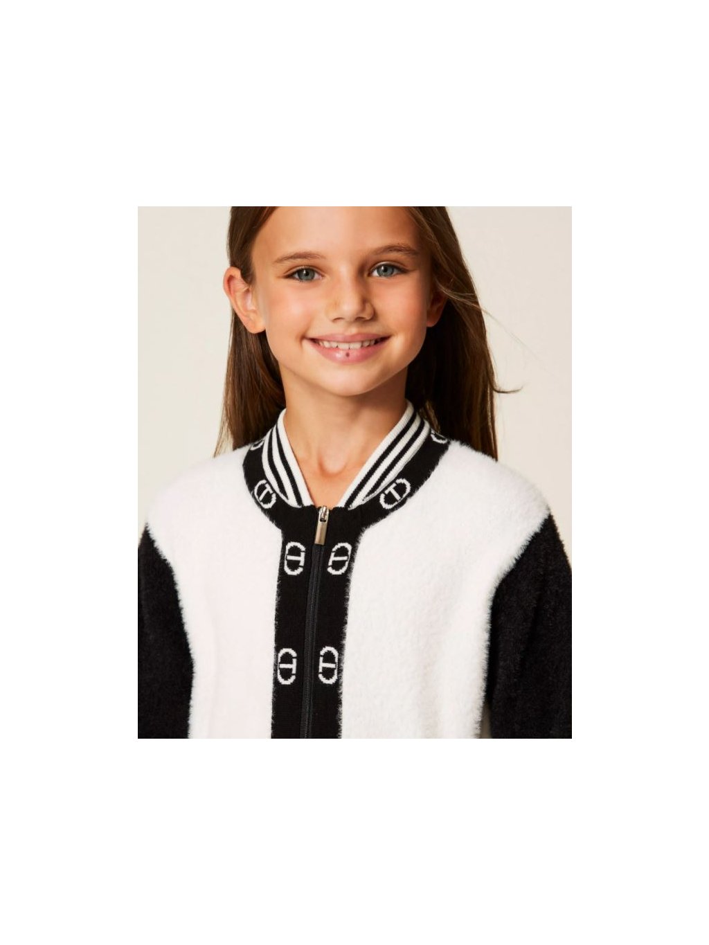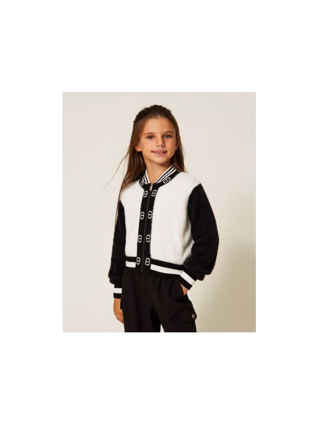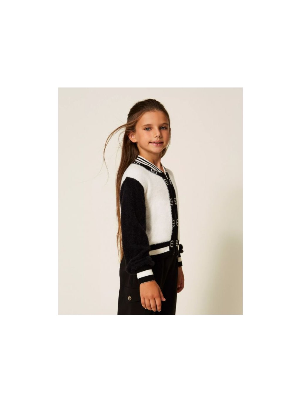 Svetr rozepínací s logem černo-bílý TWINSET Girl