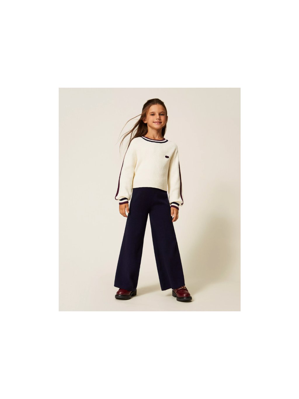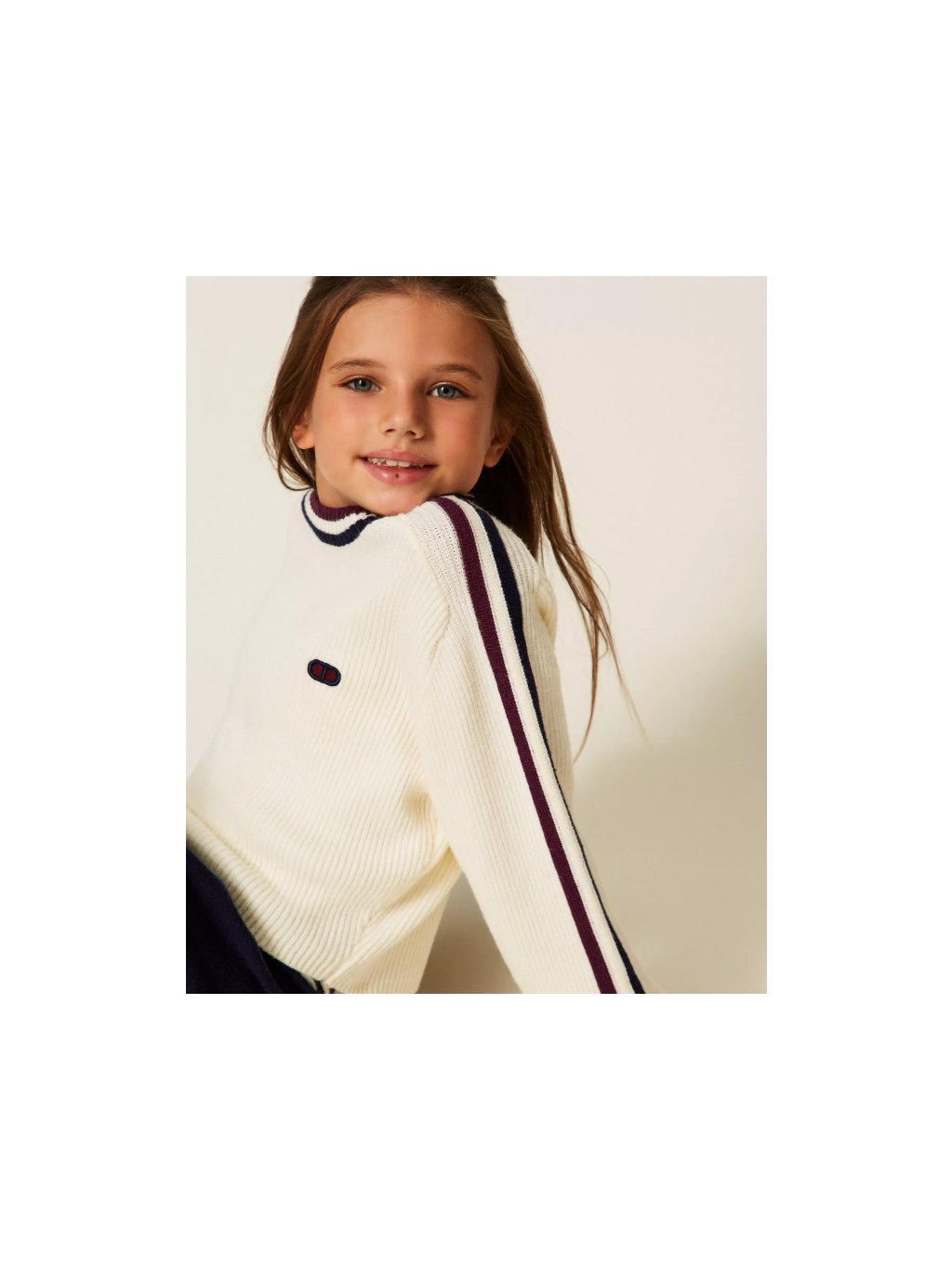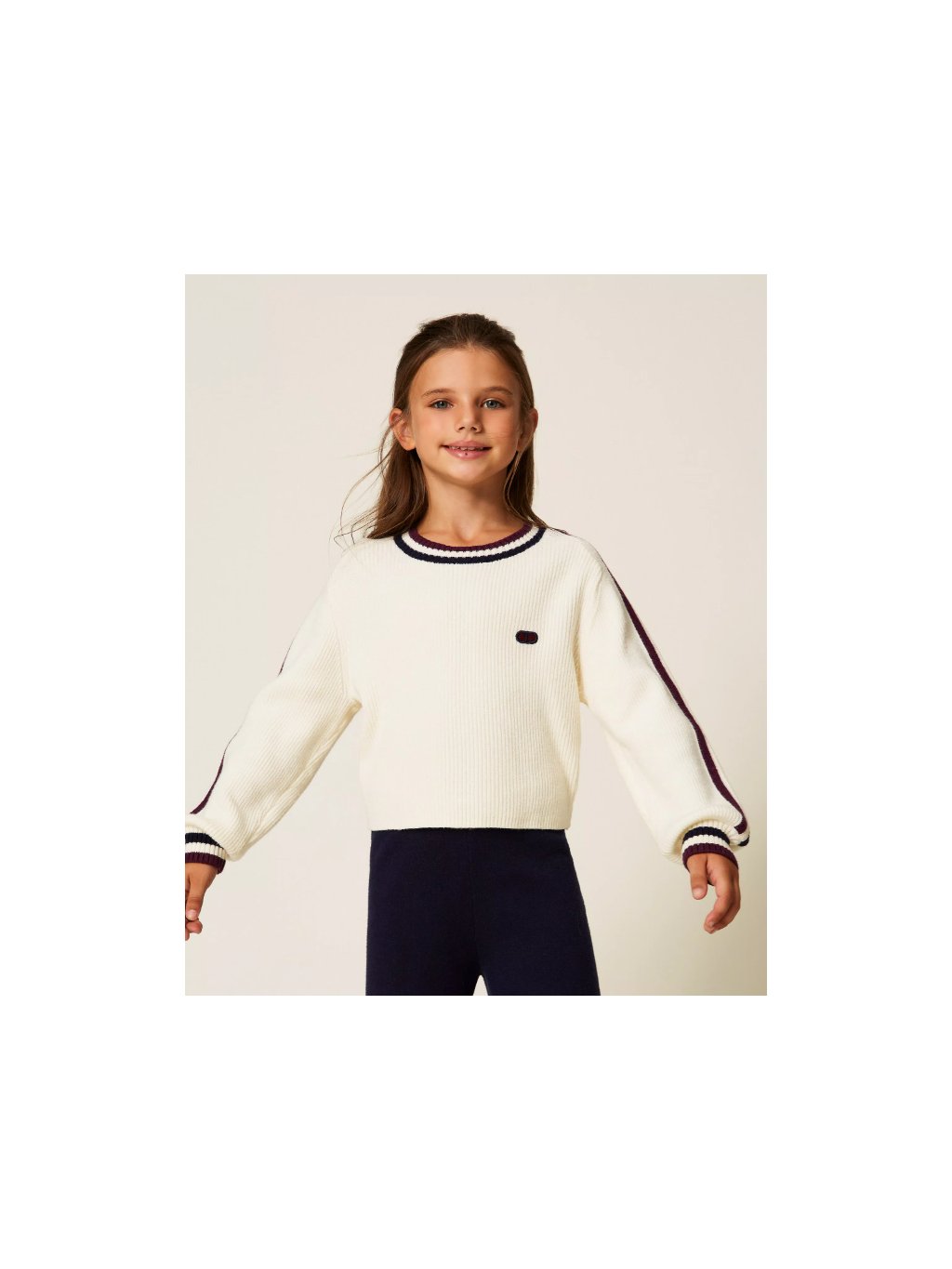 Svetr s logem a lampasy smetanový TWINSET GIRL