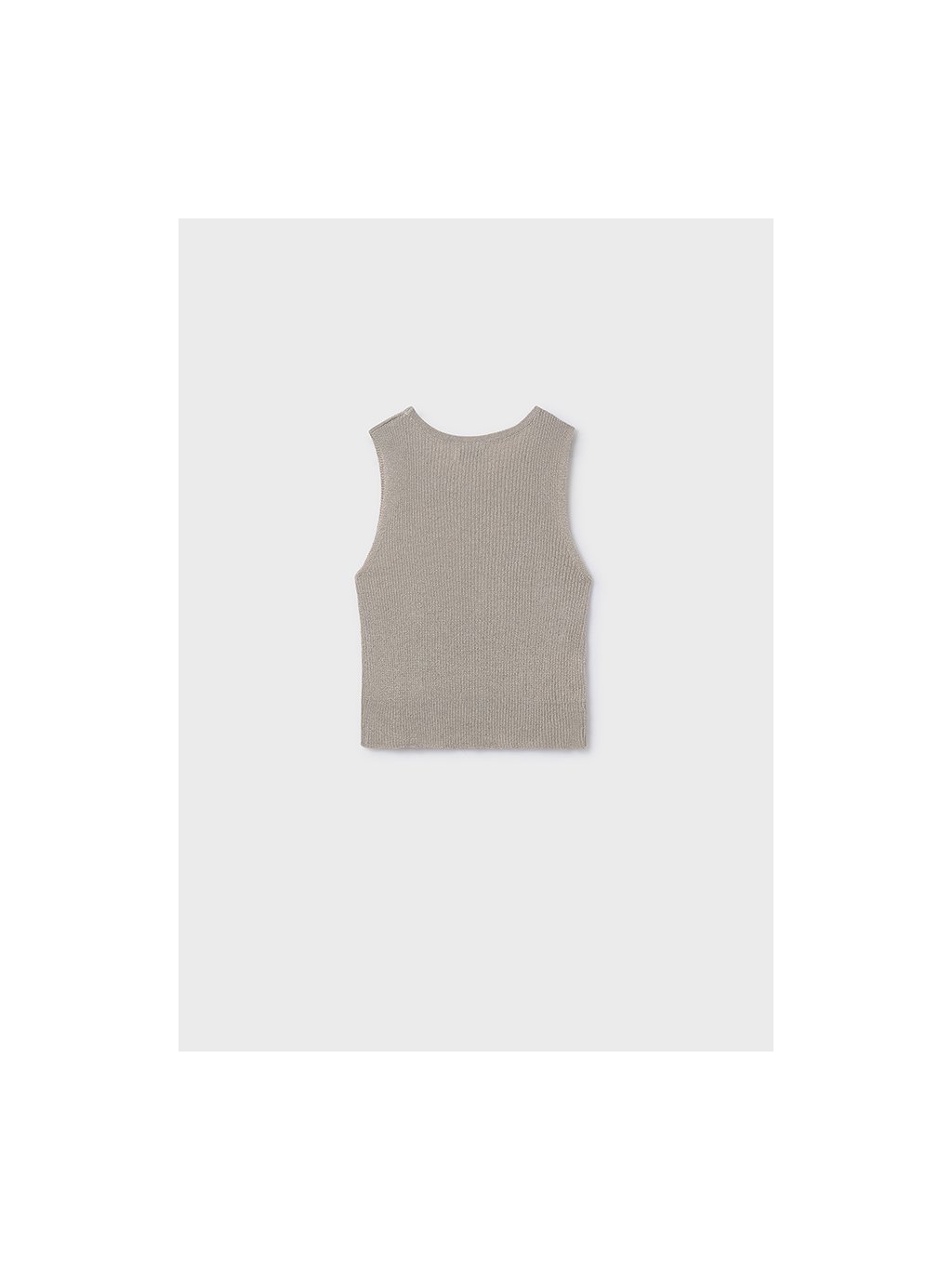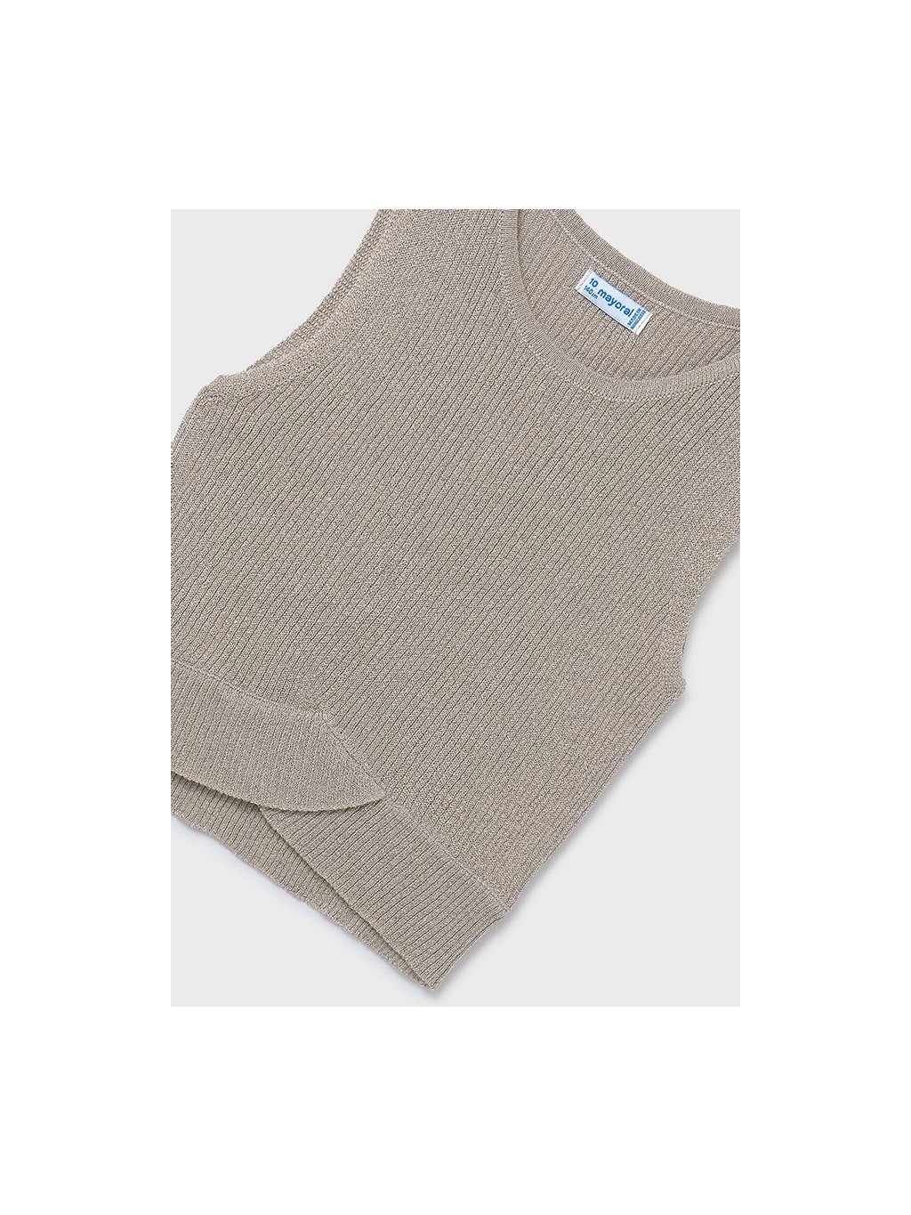 Mayoral dívčí úpletový top se zajímavě řešenou přední stranou topu. Top je z velmi příjemného, pružného úpletu. Ačkoli se jedná o úplet, není nijak teplý a je vhodný i do horkých letních dní. Top má u krku kulatý výstřih. Spodní část je překřížena. Top je kratší délky.