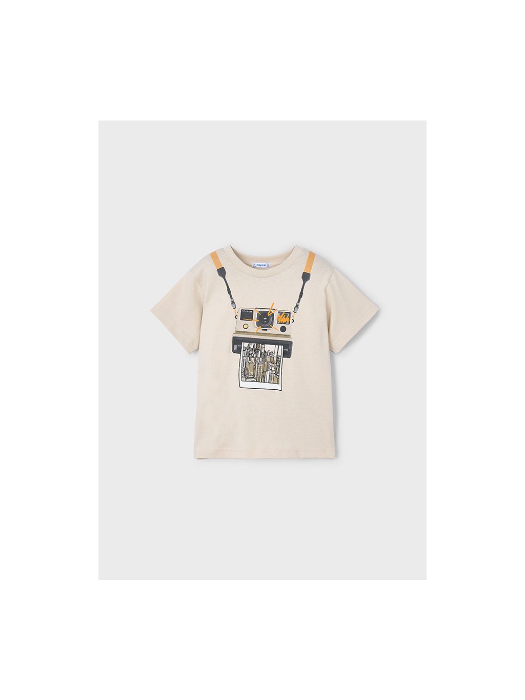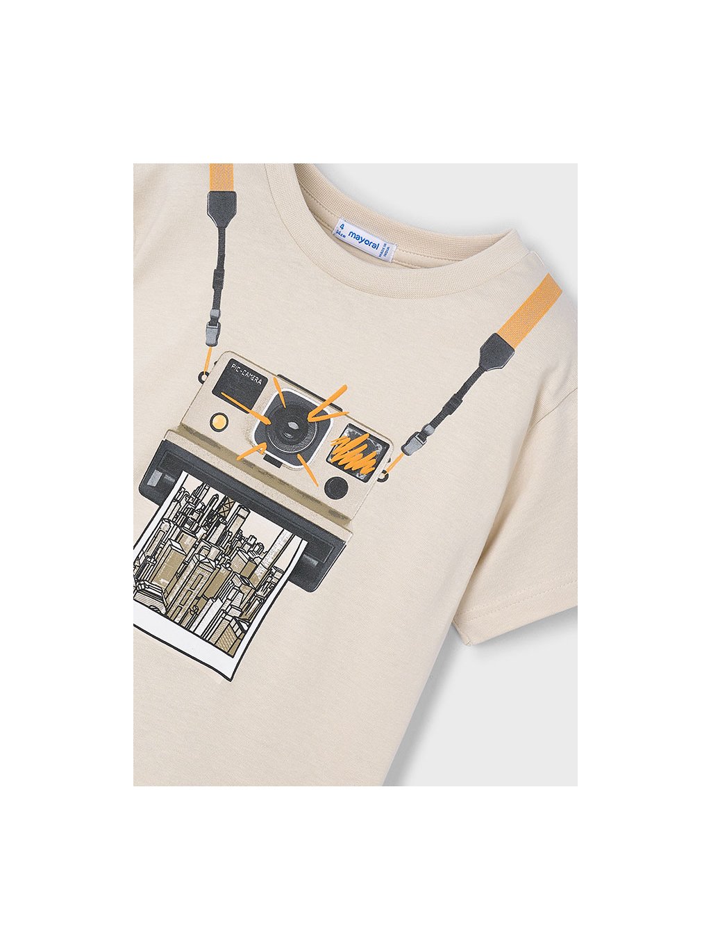 Tričko s krátkým rukávem FOTOAPARÁT béžové MINI Mayoral