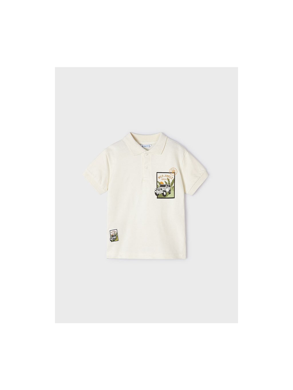 Triko polo s krátkým rukávem WILD JUNGLE smetanové MINI Mayoral