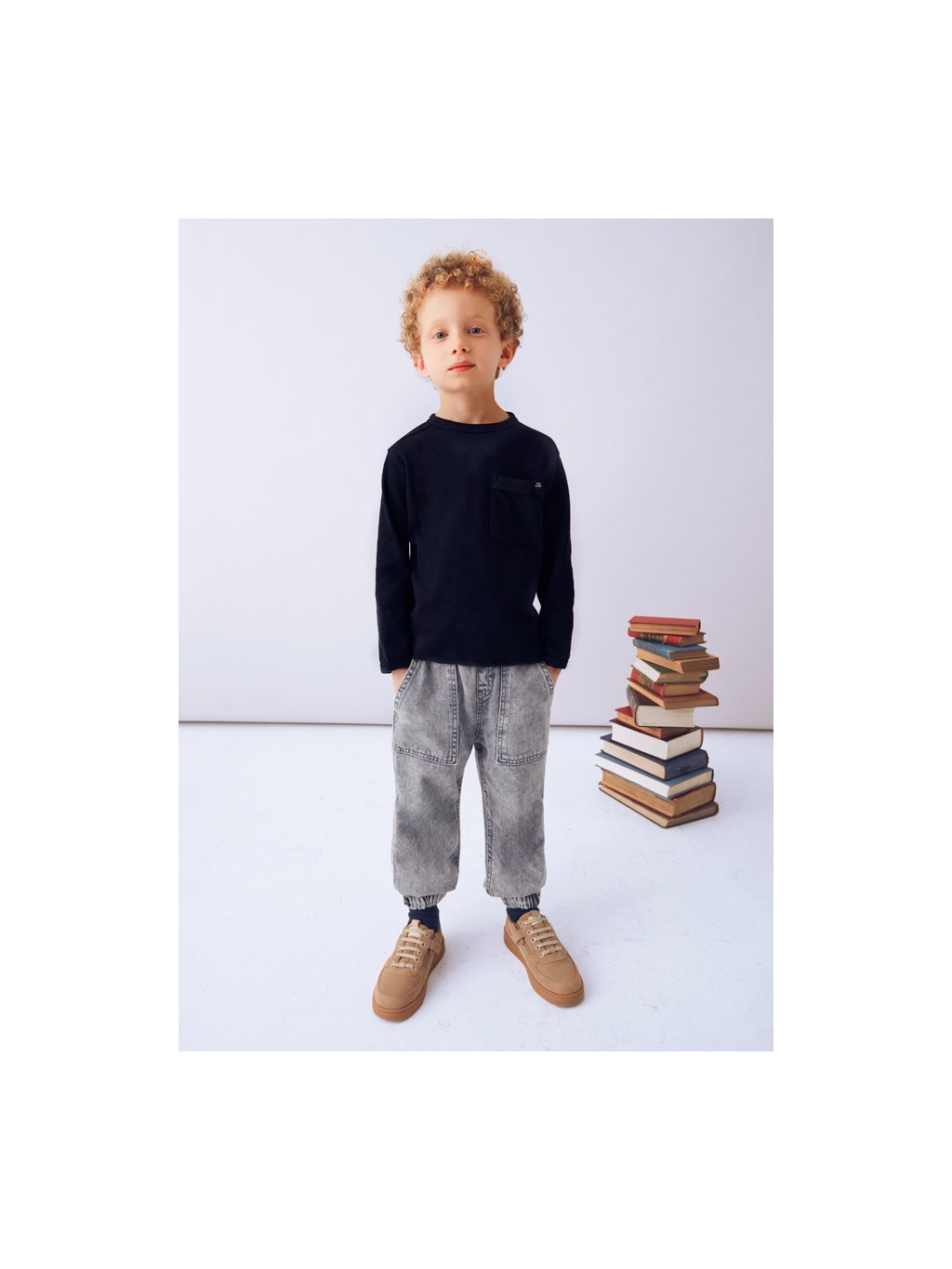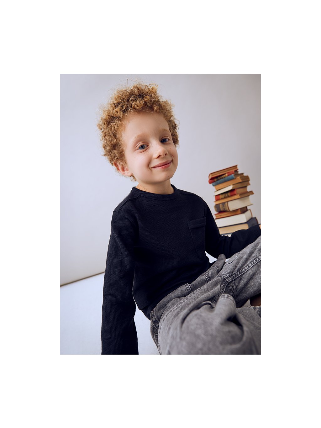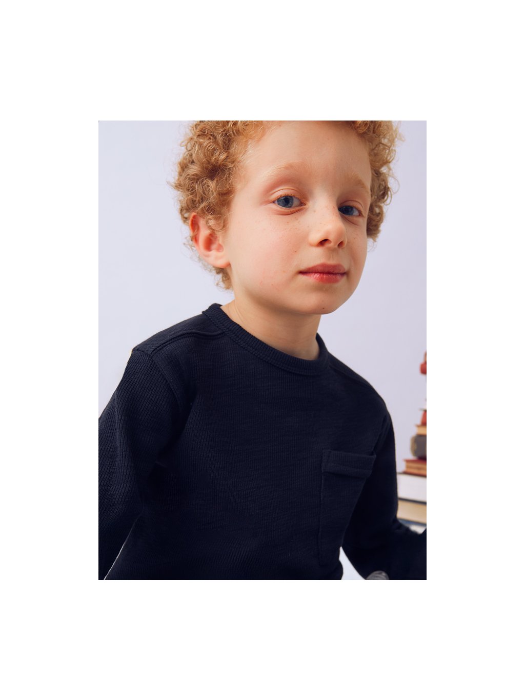 Triko s dlouhým rukávem a kapsičkou žebro modré MINI Mayoral
