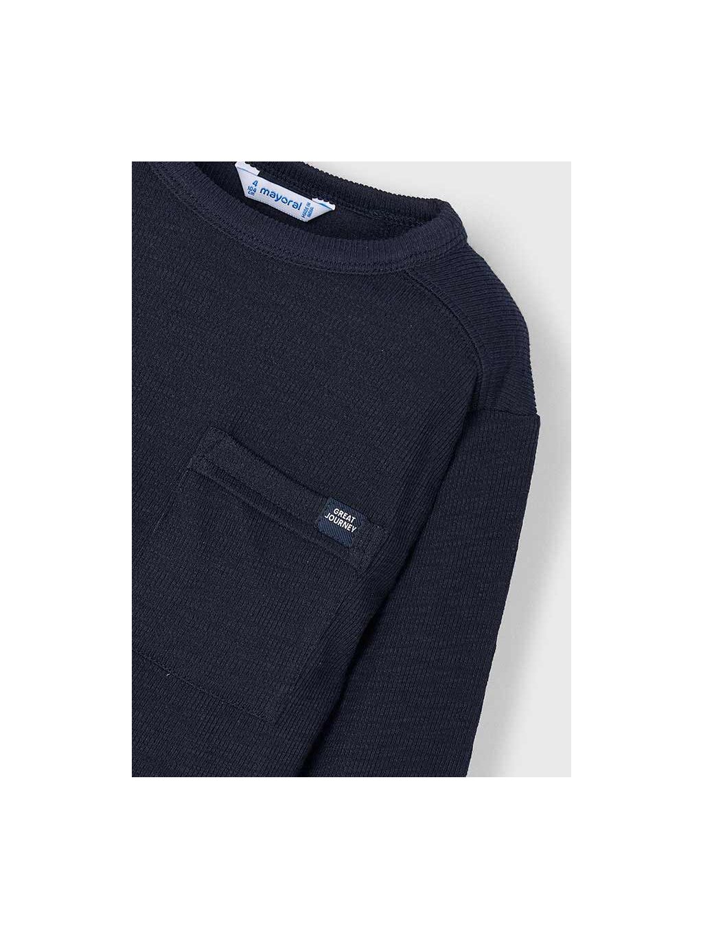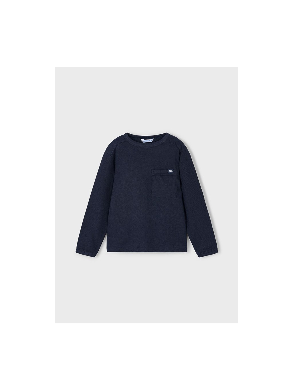 Mayoral chlapecké bavlněné triko s dlouhým rukávem a kapsičkou. Triko má u krku kulatý výstřih, na levém prsu je kapsička.
