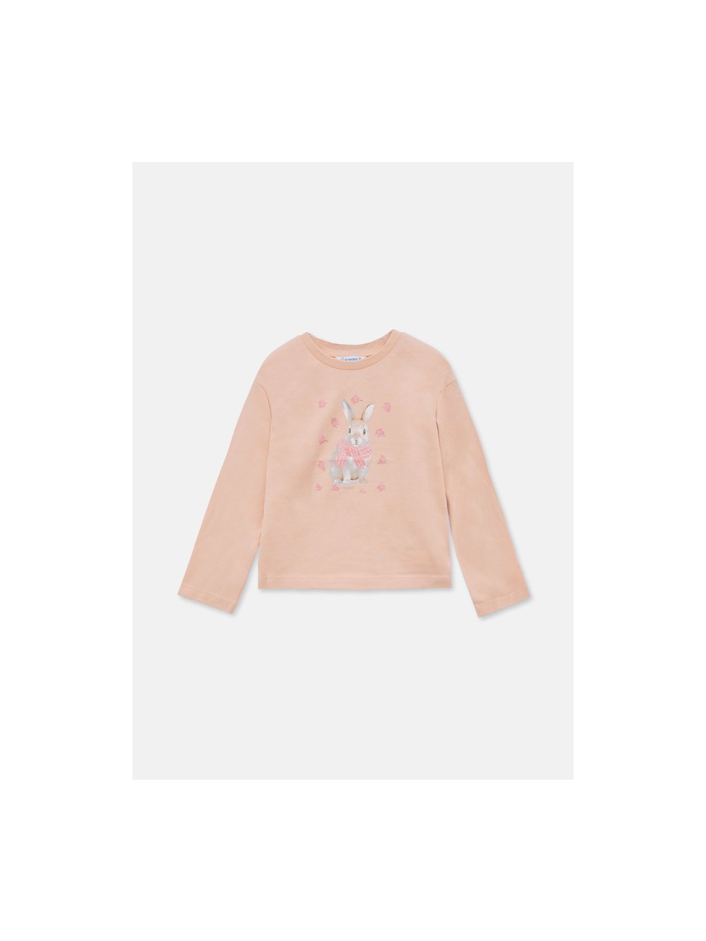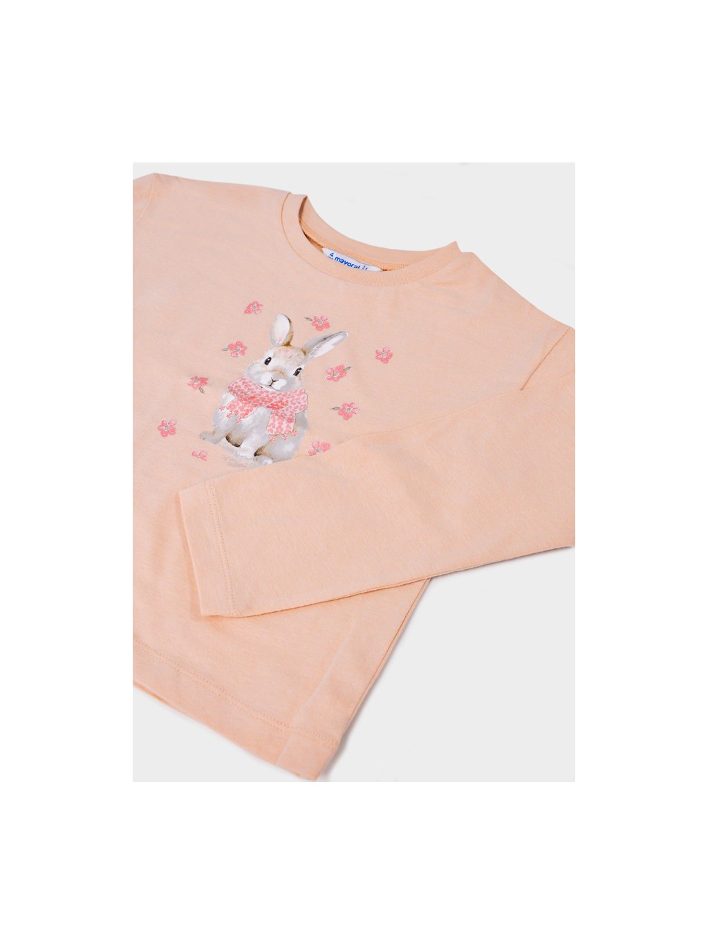 Mayoral dívčí triko s dlouhým rukávem a tiskem. Triko je z velice příjemného bavlněného materiálu s elastanem. Triko má na přední straně roztomilý tisk králíčka, u krku je kulatý výstřih.