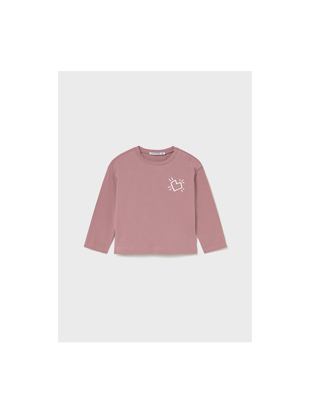 Mayoral dívčí elastické triko s dlouhým rukávem a tiskem. Triko je z velmi příjemného, bavlněného materiálu s elastanem. Na přední i zadní straně má triko tisk. U krku je kulatý výstřih s volánkem, na levém rameni má triko cvoky pro snadnější oblékání.