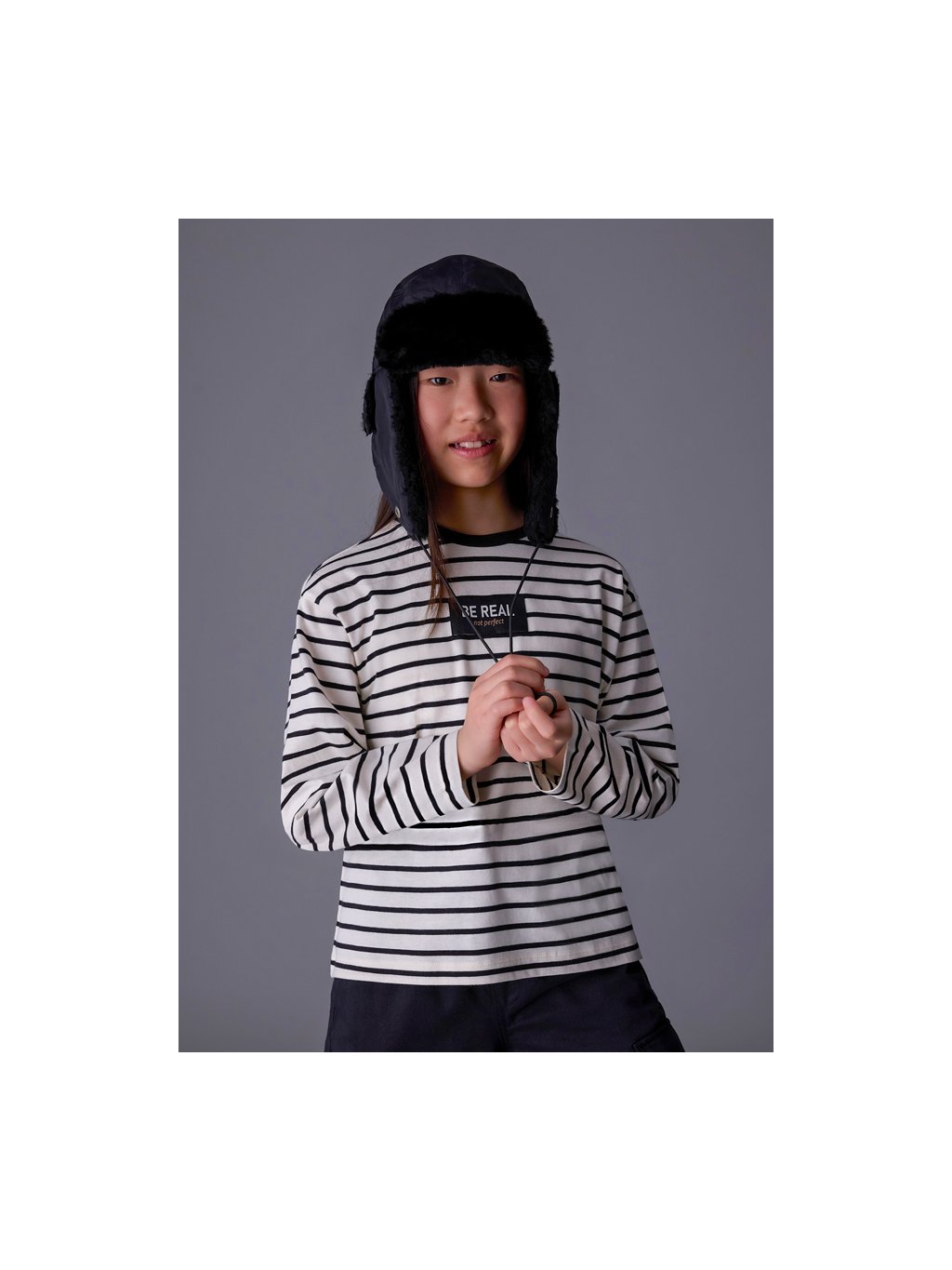 Triko s dlouhým rukávem pruhy Be real černé JUNIOR Mayoral