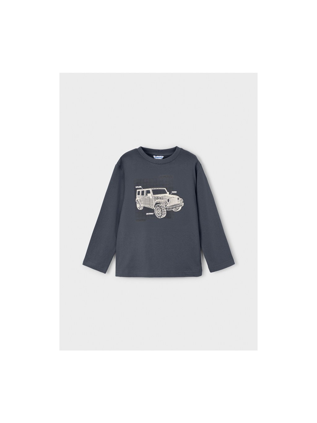 Mayoral chlapecké bavlněné triko s dlouhým rukávem a svíticí aplikací auta. Triko má u krku kulatý výstřih, na přední straně je svíticí aplikace a tisk. Triko je ze 100% bavlněného materiálu.