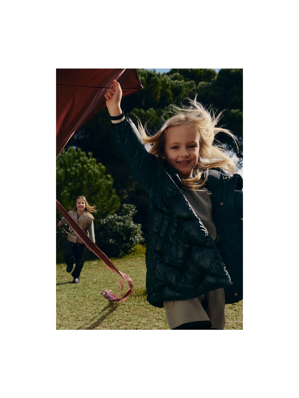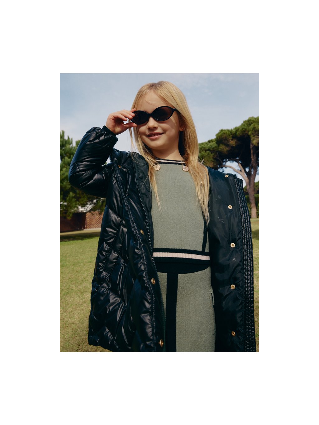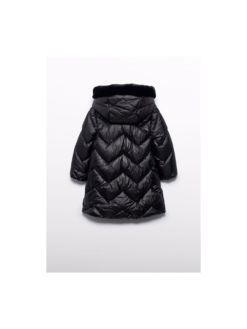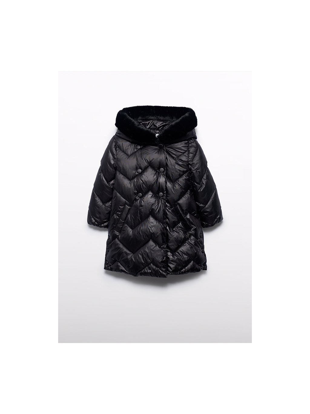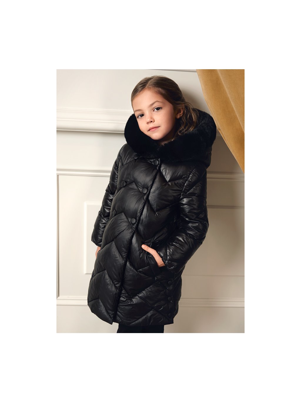 Luxusní dívčí prošívaný zimní kabát s heboučkým kožíškem. Kabát má na přední straně dvouřadé zapínání. Na přední straně jsou dvě funkční kapsy. Kabát je plněn dutým vatelínem a je podšitý heboučkým fleecem.